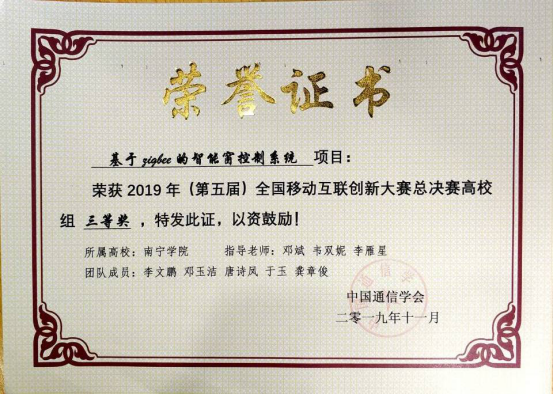 据悉,晋级本次总决赛共有来自全国11个赛区涵盖高校和企业共计241个项目,本次总决赛分为高校组和社会组两个组别。在高校组的决赛中,学校信息工程学院学生团队的3个项目与来自晋级决赛的北京航空航天大学、厦门大学、北京交通大学等百余所国内知名高校182个项目同台竞技参赛团队分别从创意来源、市场痛点、技术实现、市场价值、商业模式和团队等方面,通过现场项目路演和答辩环节进行紧张角逐。最终,校学生团队的“百越遗风 鼓韵重生”“新一代复合包装材料”2个项目斩获二等奖,“基于ZigBee的智能窗控制系统”项目斩获三等奖。(文/图 信息工程学院 刘欣蕾)