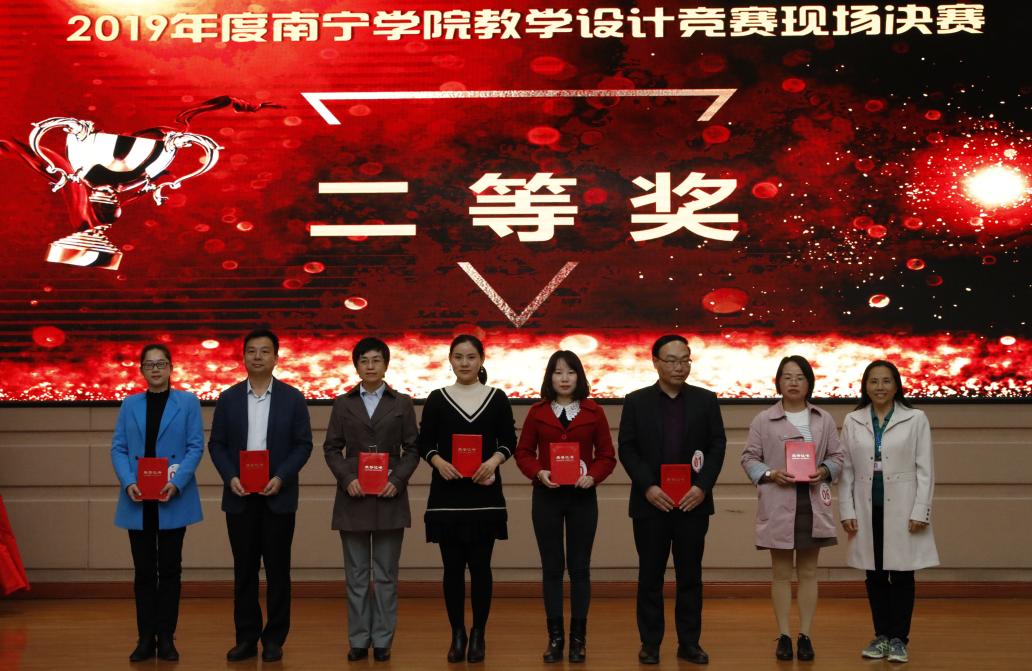 竞赛围绕教学设计展开,每位参赛教师用12分钟进行教学设计讲解,3分钟评委提问。评委通过参赛教师对于课堂分析、教学目标、教学方法、教学手段等进行评分。现场竞赛评选出一、二等奖,其中一等奖获得者来自土木与建筑工程学院莫春美、韦丽和管理学院项群娟。现场进行了颁奖仪式。