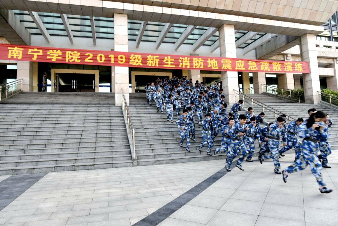 为加强安全管理,提高2019级新生在突发灾害事故中逃生、自救、互救的技能,学2019年12月11下午开展2019级新生消防和地震安全知识培训和演练活动。学工处副处长韦超才,后勤基建处副处长凌海妹,各二级学院学工科科长、辅导员、图书馆全体人员、后勤基建处相关科室人员、安保人员及2019级新生等3800多参加此次活动,培训和演练活动由南宁市首安消防安全职业培训学校的教官团队全程指导、协办。