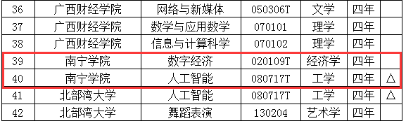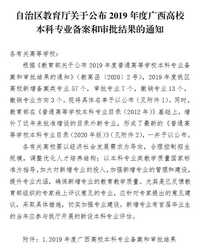 近日,教育厅发布《自治区教育厅关于公布2019年度广西高校本科专业备案和审批结果的通知》(桂教高教〔2020〕13号),kaiyun体育网页登录入口组织申报的普通本科专业“数字经济”(专业代码020109T)和“人工智能”(专业代码080717T)正式获批。至此,学校本科专业数量达到29个,专业结构得到进一步优化。
