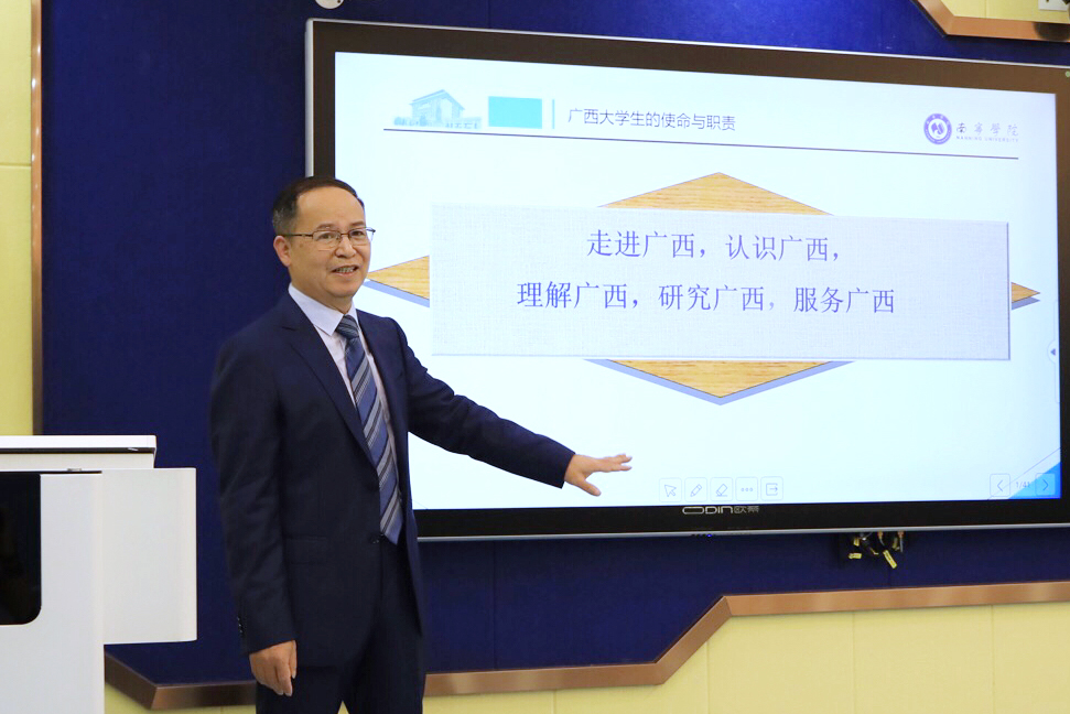 “走进广西、认识广西、理解广西、研究广西、服务广西”是广西大学生的使命与职责,“释放海的潜力,激发江的活力,做足边的文章”是广西大学生实现使命与职责的途经。陈雄章副校长的广西历史与区情教育系列特色通识课程,必将引导学生关注广西经济发展,培育学生建立社会意识与责任担当,提高学生创新创业意识与能力,极大地促进学生成长。(教务处供稿)
