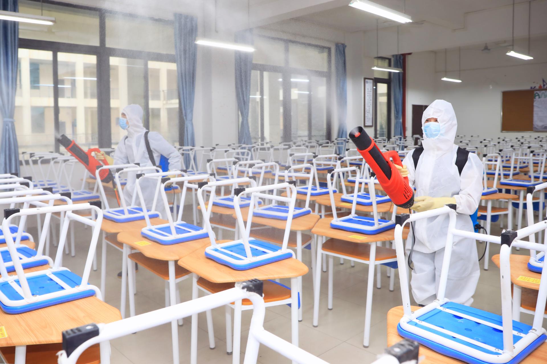 为进一步做好疫情防控及开学准备工作,给广大师生营造一个健康、安全的学习环境,学校按照疫情防控规范要求,聘请专业公司对全校所有场所进行开学前消毒工作。