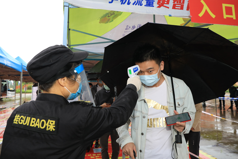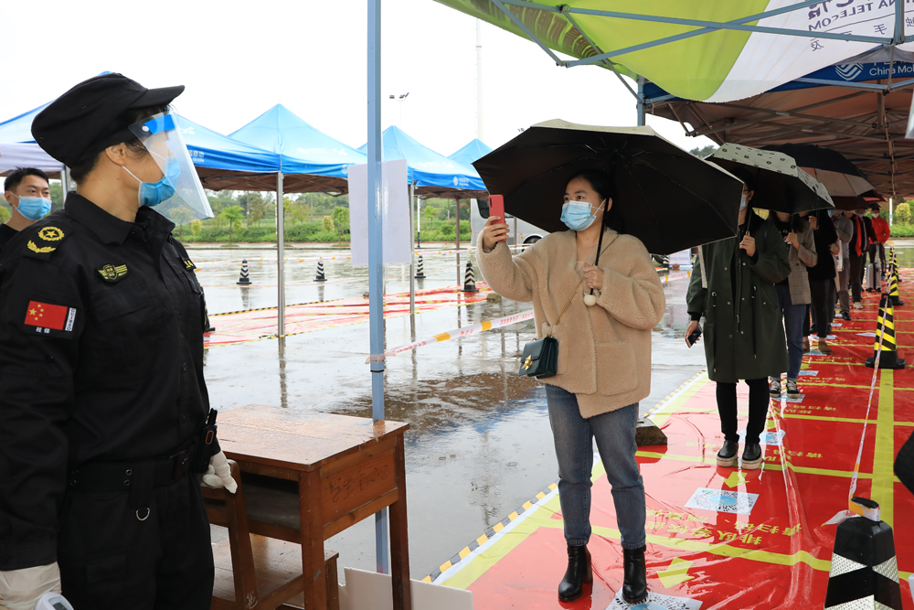 返校的“学生”有序排队扫码进入校园