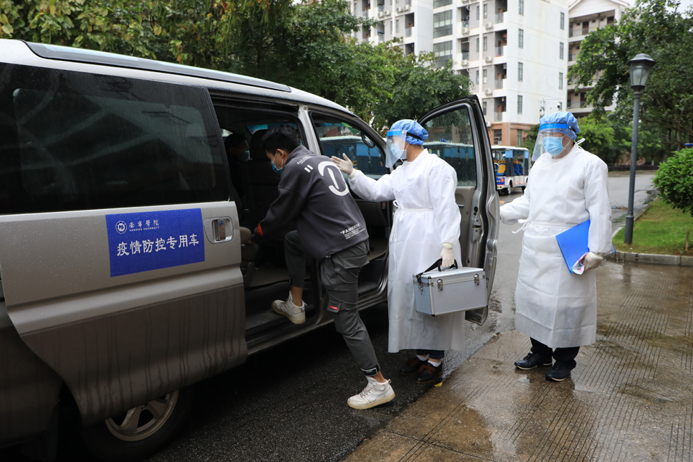 下午三点,演练在学校南大门入口处正式开始,学校疫情防控工作领导小组副组长、副校长龚击作动员讲话。本次演练采取场景模拟和现场演练相结合的方式,根据返校报到过程中的重点环节和风险点、防控点进行了应急实战演练。演练分别模拟了学生返校报到、晨检、转诊、接诊、启动应急预案、预案解除六个防控应急处置情景,对学生返校报到、学生宿舍健康监测、上课突发疫情处置和疑似病例应急处置等进行了重点演练,从排队引导、测温亮码、行李消毒,到晨检测温、疫情报告、疫情解除各方面进行全方位演练。