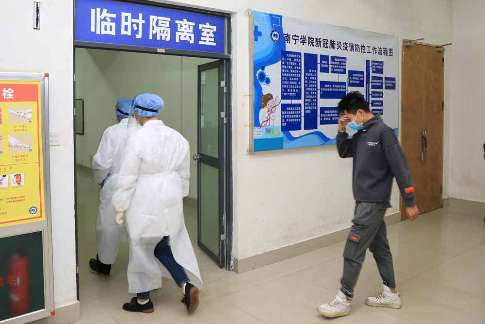模拟疑似病例进入学校临时隔离室进行隔离场景