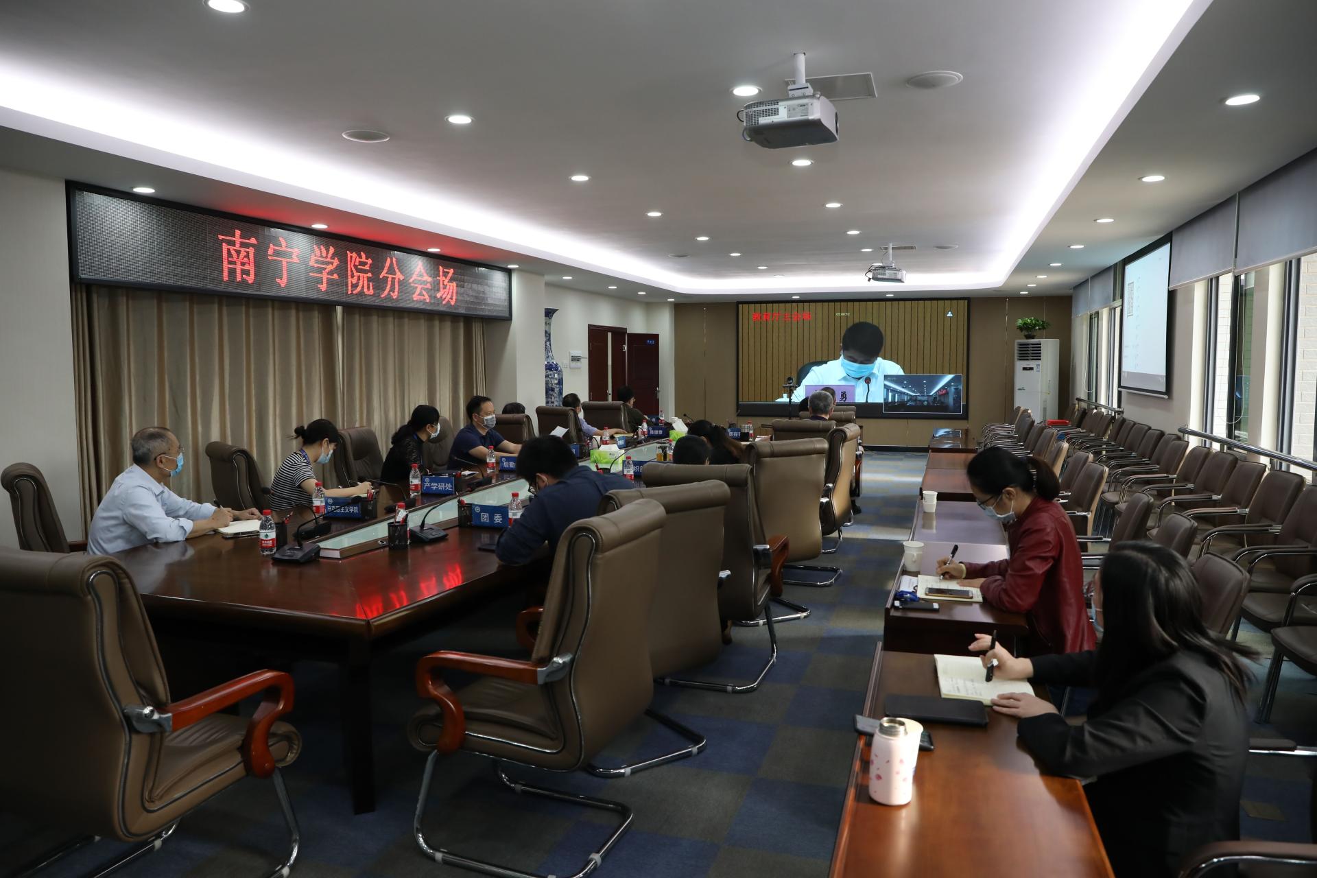 学校在行政楼322会议室设立视频会分会场。校长赖每,党委书记刘彪,党委副书记覃存民,副校长陈雄章、文旭光、李陶深,组织部、宣传部、统战部、教务处、产学研处、后勤基建处、校团委及马克思主义学院的负责人参加了视频会议。