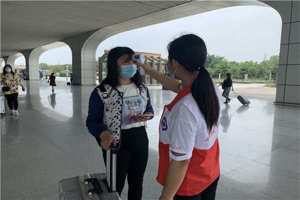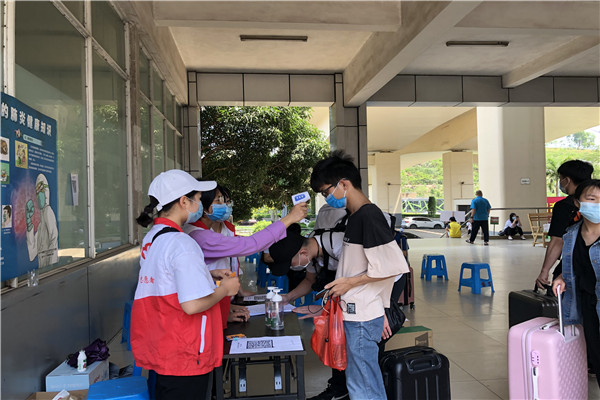 志愿者在为返校同学测量体温