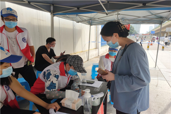 志愿者为返校同学登记信息