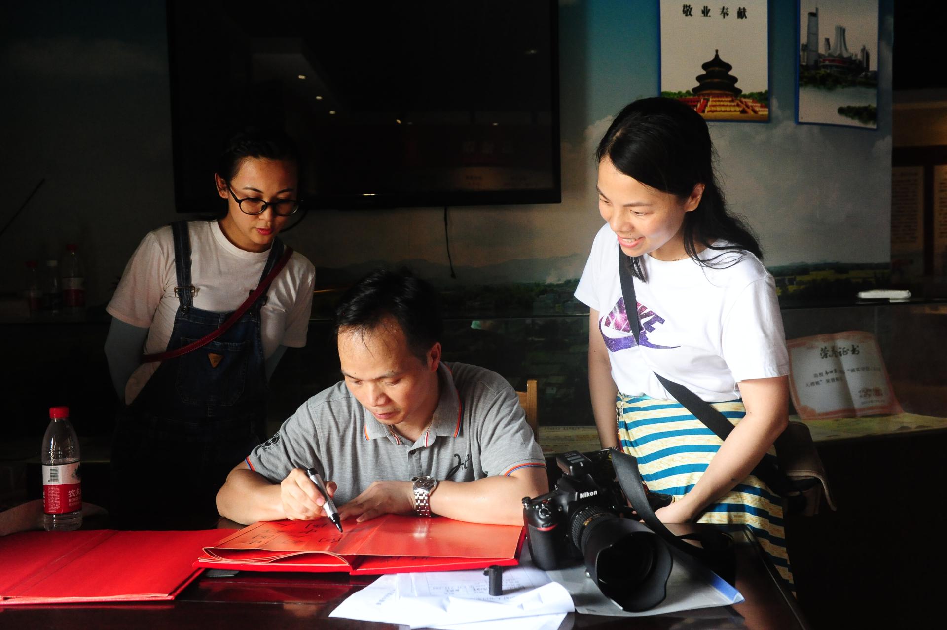 在陈氏宗祠与管理员老奶奶亲切交谈