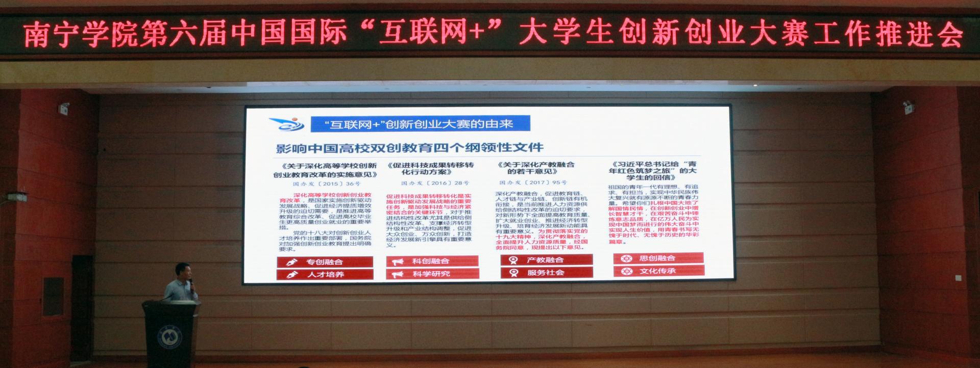 创新创业学院院长马骏博士对第六届中国国际“互联网”大学生创新创业大赛的作了解读