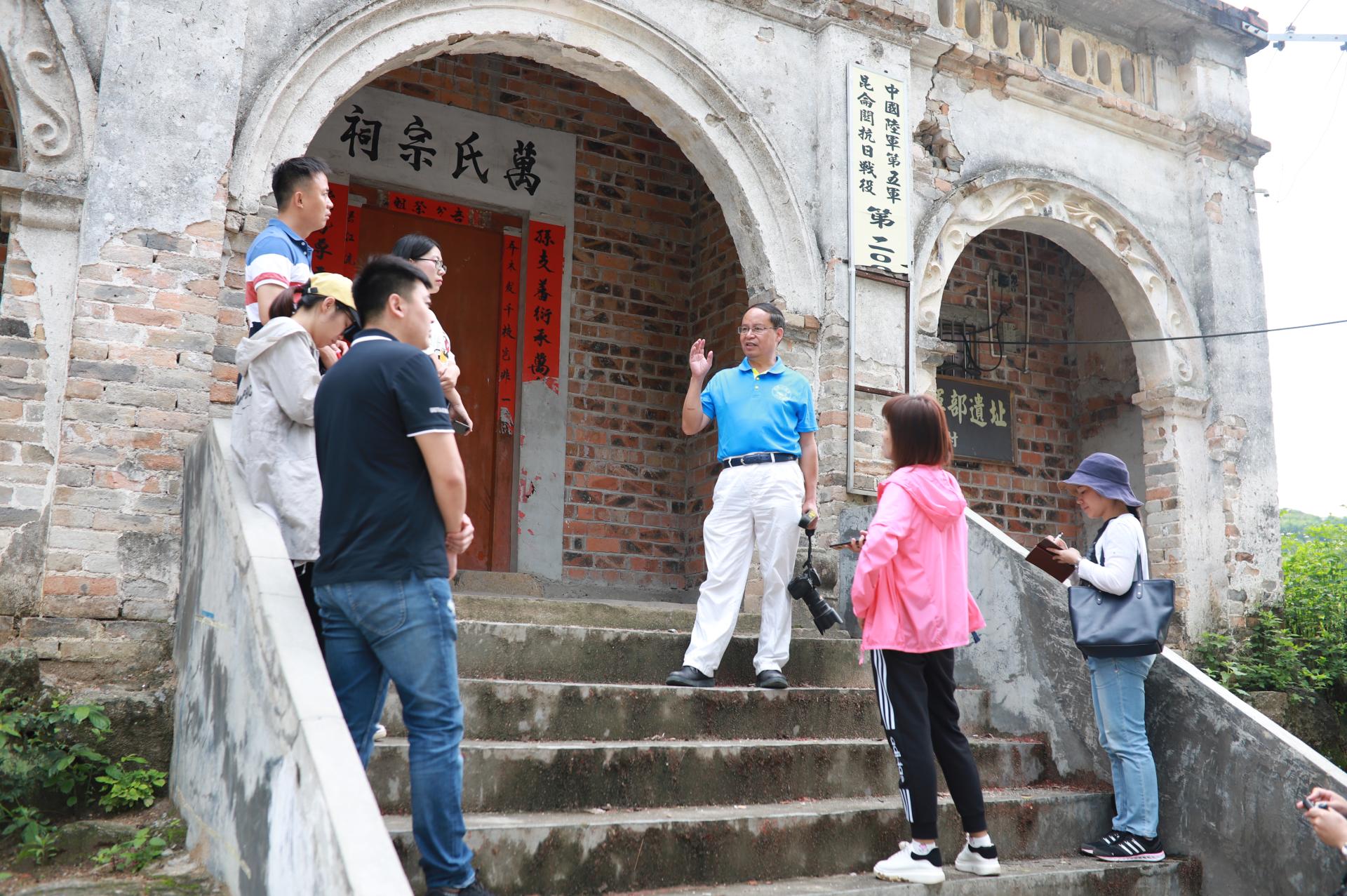 当日下午,本期调研的第四个目的地是中华镇施村,主要考察了施村的施氏家庙、茶辣古镇等明清古建筑,参观了苍峰书院、明镜书房等古代书院遗址,还有宾阳四大名人之一爱国民主人士施正甫,凭吊了施村保卫战、昆仑关第一防线苍抱山战役抗日烈士纪念碑等。施村古老而美丽,至今近600年历史,是宾阳最大的一个村,家家户户皆为施姓,同宗共祖,据说广西95%以上的施姓均源自中华镇施村。该村是村史文化建设示范点,每年清明节,各地施氏后裔不远千里、不畏艰苦、长途跋涉,千里迢迢来拜祖。施村历史久远,涌现出许多的英雄人物和爱国人士,如近代宾阳四大名人之一爱国民主人士施正甫,施村有重教育、重文化的爱国传统。