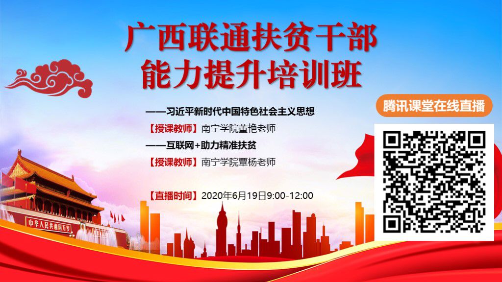 为努力提高中国联合网络通信有限公司广西壮族自治区分公司(以下称“广西联通”)驻村第一书记和工作队员履职担当能力,增强驻村第一书记和工作队员为民服务本领,打造一支“懂扶贫、敢担当、善作为”的过硬干部队伍,切实加强当地精准脱贫驻村帮扶工作,6月19日上午,广西联通驻村扶贫书记培训班采用云课堂的形式进行线上授课,学校马克思主义学院副院长董艳和管理学院副教授覃杨老师应邀为本次培训班授课,助推广西脱贫攻坚战由“打赢”向“打好”转变。