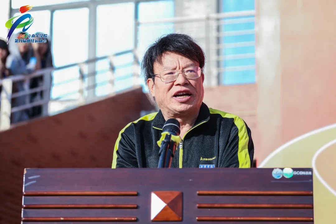 覃存民副书记在开幕式上指出,学校田径运动会是学校一年一度的体育盛事,是展示学校师生精神面貌的舞台,也是检阅师生开展体育锻炼效果的平台,希望运动员发扬“更快,更高,更强”的精神,奋勇争先、顽强拼搏、赛出水平、赛出友谊。
