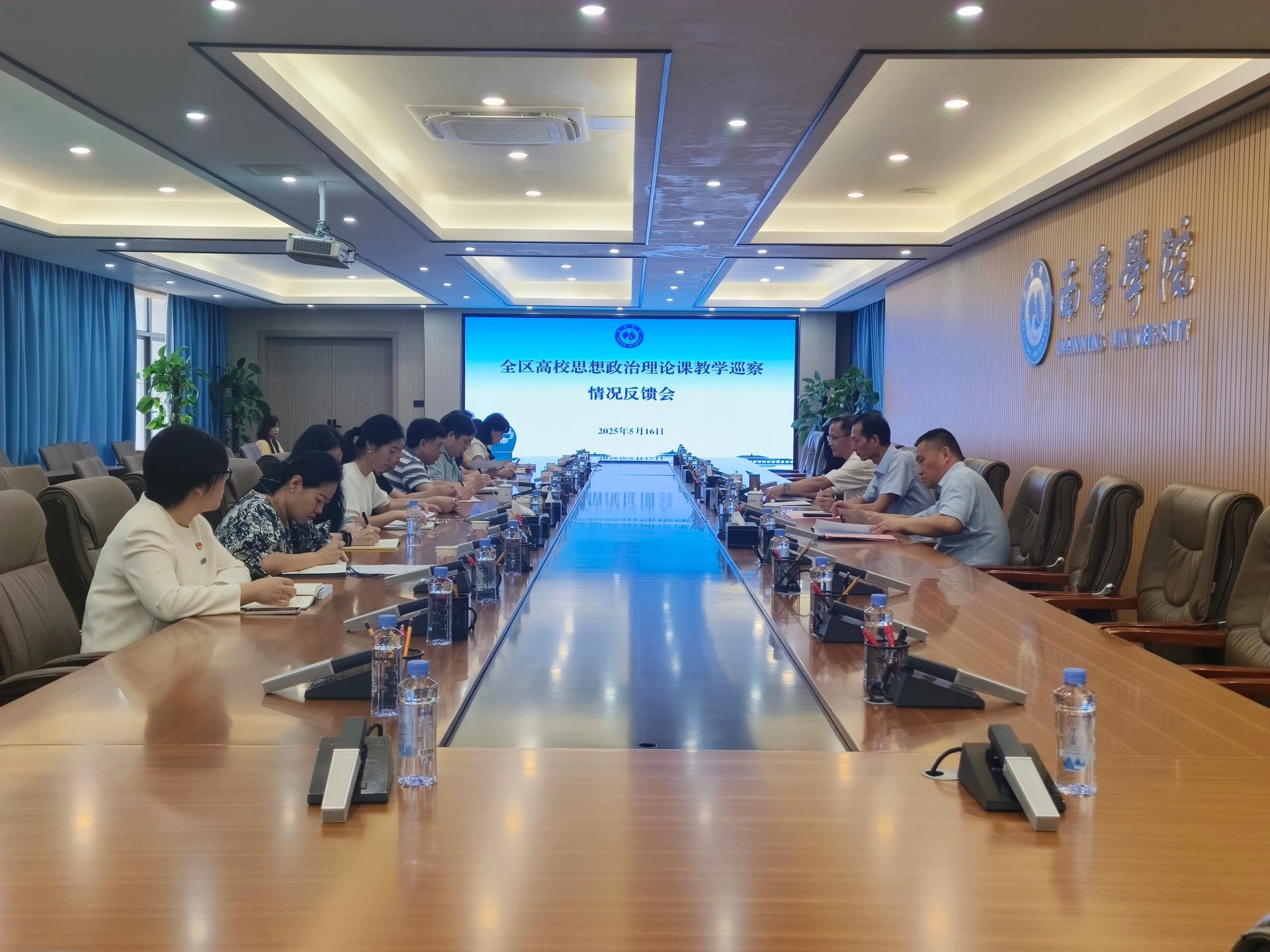 在汇报会上,校党委书记刘彪以《固本强基提质量,踔厉奋发促成长》为主题,从“习近平新时代中国特色社会主义思想概论”课程建设情况、思想政治理论课建设相关重点指标的落实情况、思政课改革创新举措、“大思政课”建设进展、2024年巡察反馈问题的整改落实情况等方面,向巡察组全面汇报了我校思想政治理论课建设总体情况。刘彪书记着重介绍了我校在思政课建设方面取得的成效:探索多元教学模式,持续推进思政课改革创新,构建了“三通五化三结合”的思政课实践教学体系;推动OBE教学理念落地实施,建设思想政治理论课“金课”;以国家级一流本科课程“社会实践(传承英雄正气新体验)”建设为核心轴,立足地方特色打造“海江边山”为四翼的“一轴四翼”“大思政课”特色品牌。最后,他表示学校将认真听取专家的意见和建议,全力配合巡察期间专家指导组的各项工作,扎实推进思想政治理论课建设。