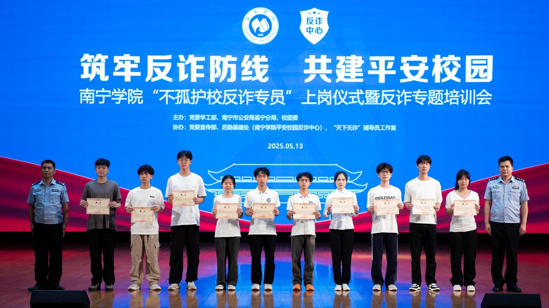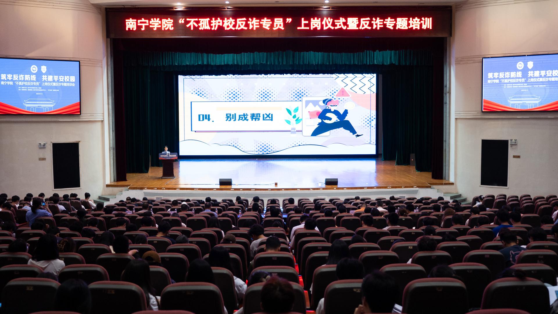 为进一步加强校园反诈工作,维护校园安全稳定,共同守护师生的财产安全。5月13日下午,学校在演艺中心举行kaiyun体育网页登录入口“不孤护校反诈专员”上岗仪式暨反诈专题培训会。参与此次会议的人员有:南宁市公安局邕宁分局副政治委员谢金凤及其他代表;校团委书记、学工处副处长李志、后基处副处长尹维、校团委副书记赵娟及其他代表;学校全体专、兼职辅导员;各学院分管反诈工作的指导教师、全体基层班级反诈专员学生。培训会由校团委副书记赵娟主持。