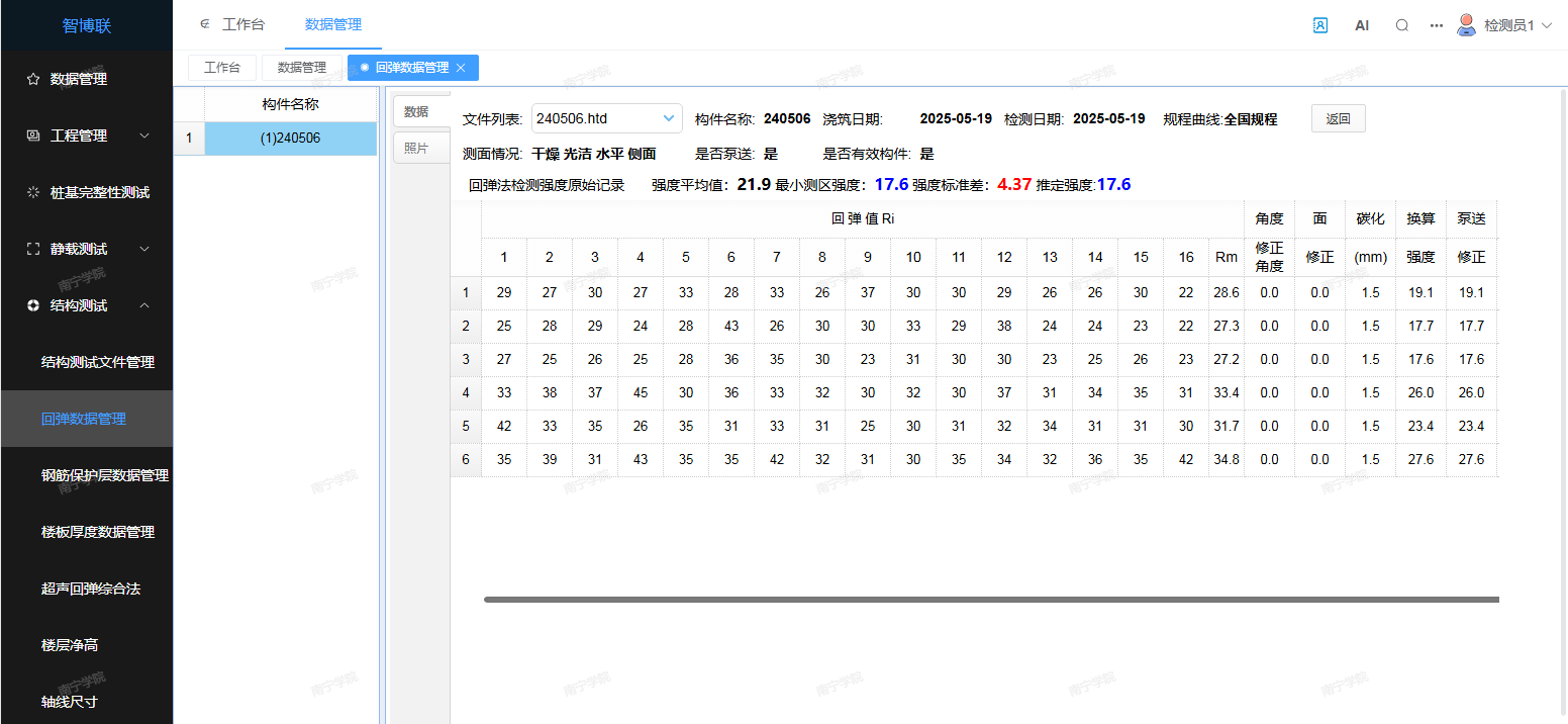 (2)智能设备助力训练:在学校的大力支持下,学院采购了一批智能化的检测设备,包括混凝土回弹仪、钢筋扫描仪、楼板厚度检测仪等。这些仪器设备具备强大的数据实时上传功能,能够将检测数据快速上传至云端,确保检测数据的真实性和准确性。自设备投入使用以来,有效杜绝了学生弄虚作假、捏造数据等不良行为的发生,帮助学生养成了严谨求实的工作态度。