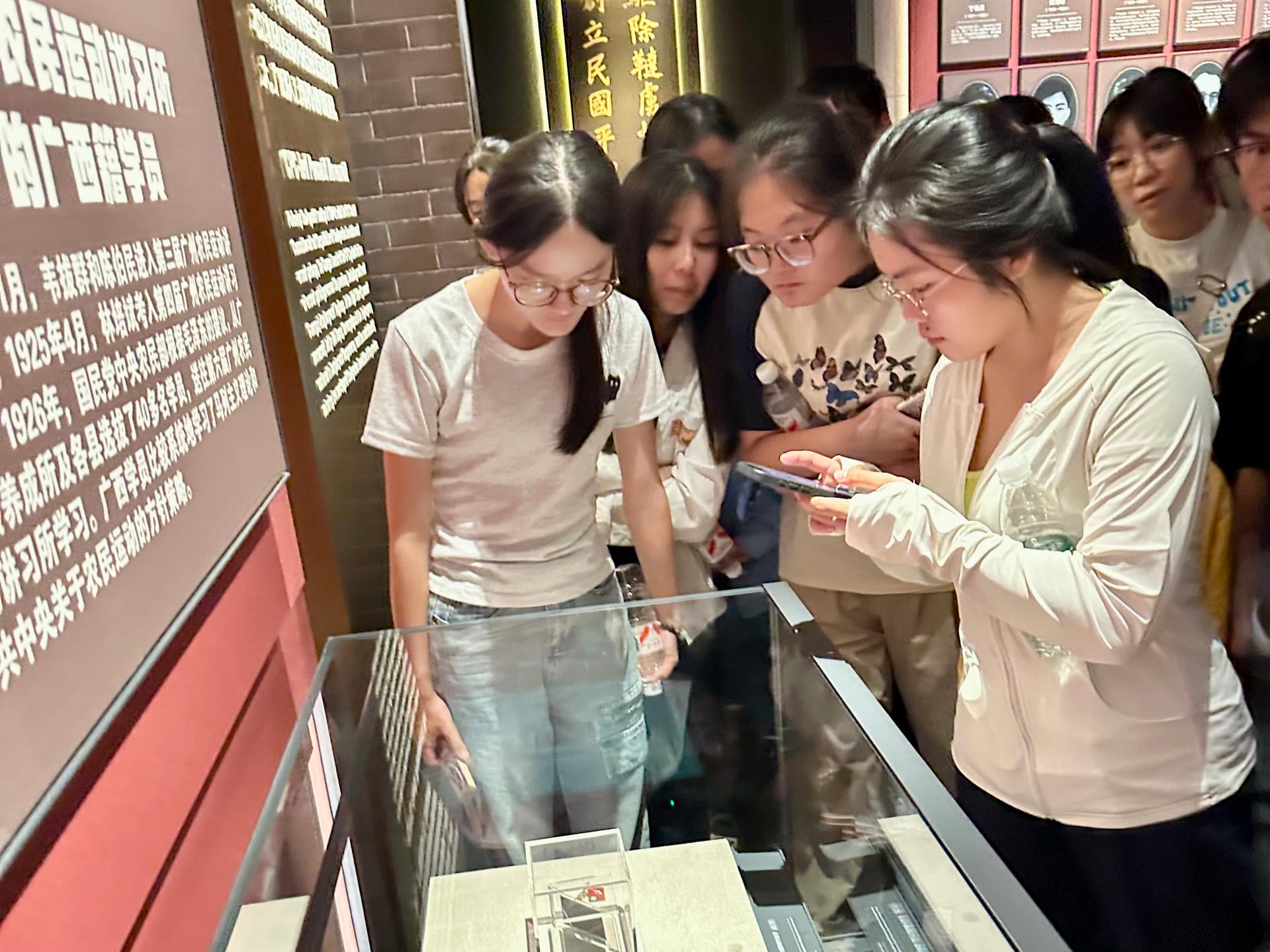此次实践教学精准挖掘广西本土红色资源,将博物馆陈列展转化为沉浸式思政课堂。在讲解员的带领下,师生们沿着“烽火南疆”的历史脉络,从泛黄的革命文献到锈迹斑斑的战斗武器,从先辈们的生活遗物到定格历史的老照片,每一件展品都成为传递革命精神的“活教材”。这种以实物为媒、以历史为桥的教学方式,让原本停留在书本上的革命故事变得立体鲜活,有效填补了理论教学与历史实践之间的空白。