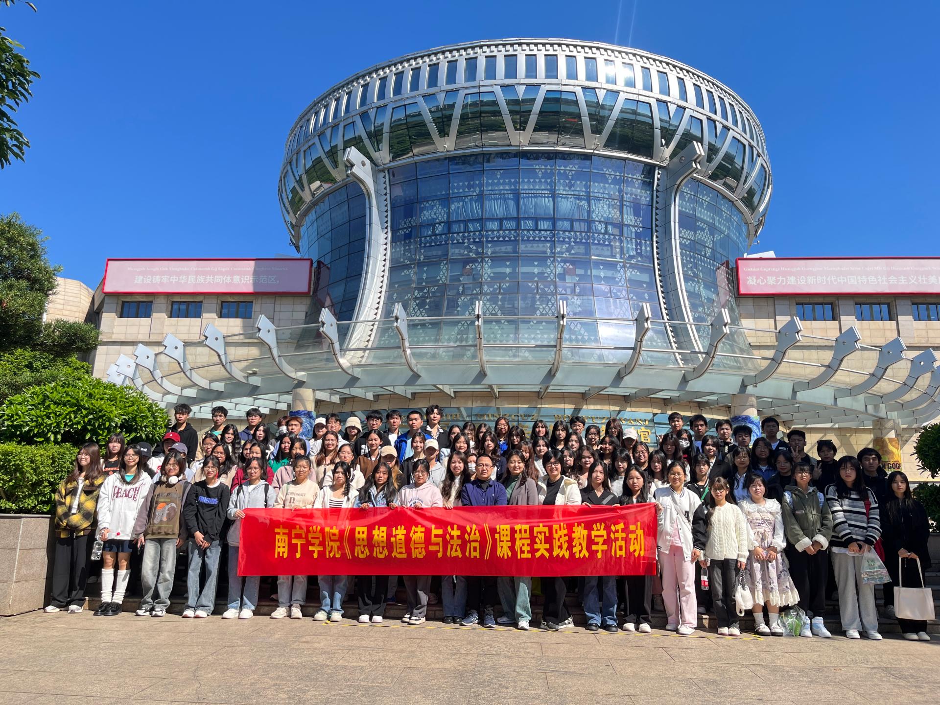 为帮助学生更好地学习和领悟“铸牢中华民族共同体意识”理念,增强对中华民族的认同、对中华文化的认同,深入了解广西壮乡民族文化,强化民族交流、增进民族情感。11月18日,马克思主义学院思想道德与法治教研室张连云、潘佳敏、王彦淇、夏宇四位教师组织2023级质量管理工程等多个专业共89名学生赴广西民族博物馆开展主题为“铸牢中华民族共同体意识 凝聚中华民族伟大复兴磅礴伟力”的课程实践教学活动。带领学生深入了解广西各民族的优秀文化传统和法治建设成果,帮助学生坚定文化自信和增强法治意识。