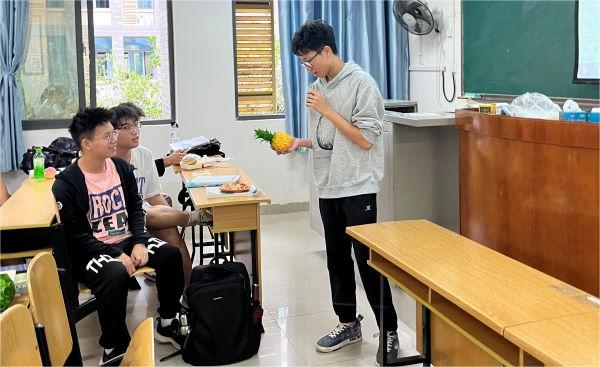 学生借助教学道具使用英语进行中国美食介绍