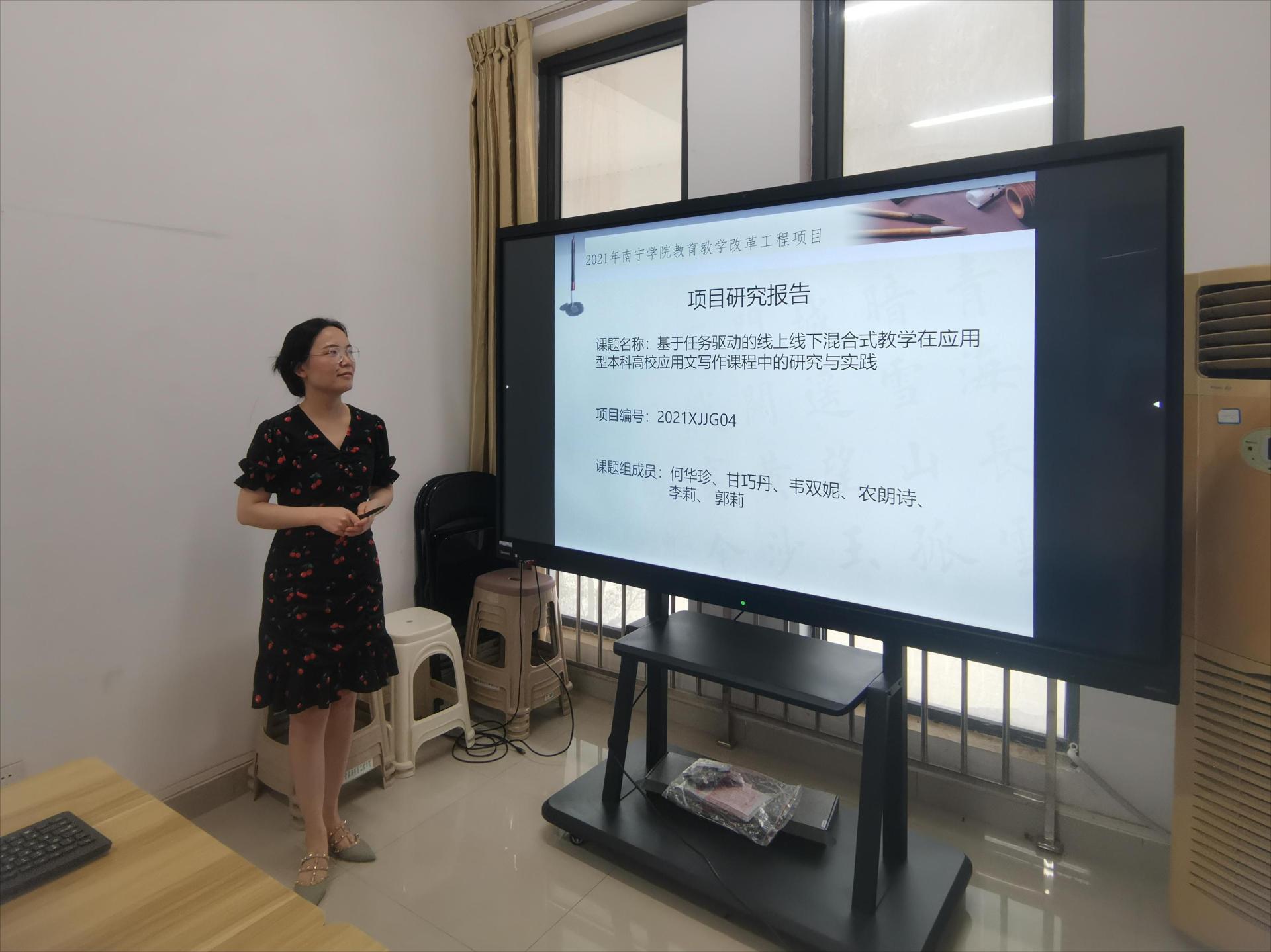 为总结《应用文写作》课程教学改革项目的研究成果,5月17日上午,在行政楼302会议室,《应用文写作》课程教学改革团队成员参加了“基于任务驱动的线上线下混合式教学在应用型本科高校应用文写作课程中的研究与实践”项目的总结研讨会,会议由项目负责人何华珍老师主持。