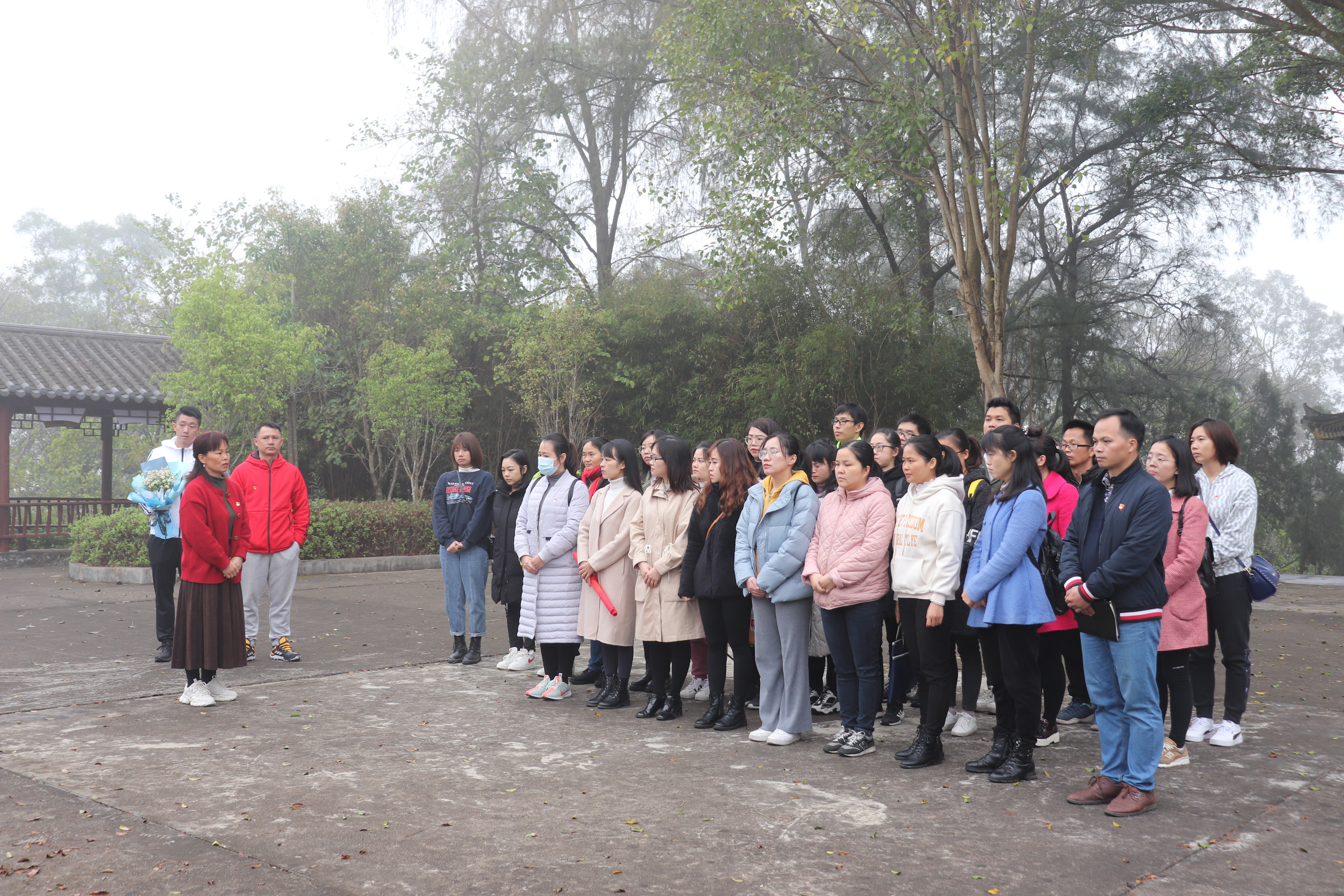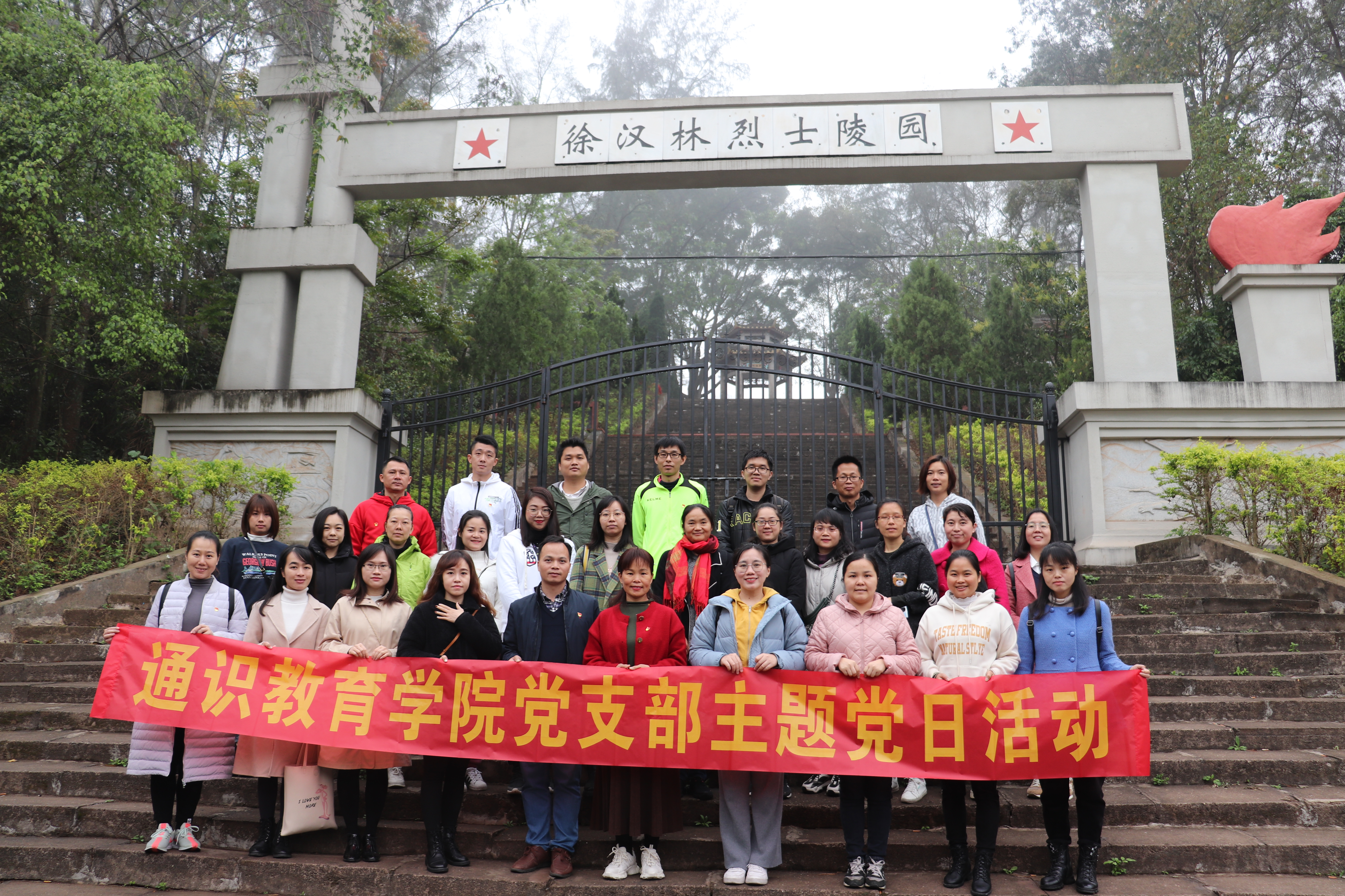活动当天,全体党员教师首先前往徐汉林烈士陵园开展“缅怀先烈,传承革命精神”主题党日活动,通识教育学院党支部副书记蓝志军给全体党员教师介绍徐汉林以及23位烈士在广西解放初期,为了清剿反动势力,舍身炸敌堡而壮烈牺牲事迹;接着,全体党员为先烈们默哀一分钟;最后,由党员代表刘奕同志为先烈献花,全体党员教师为先烈们敬香、敬酒。