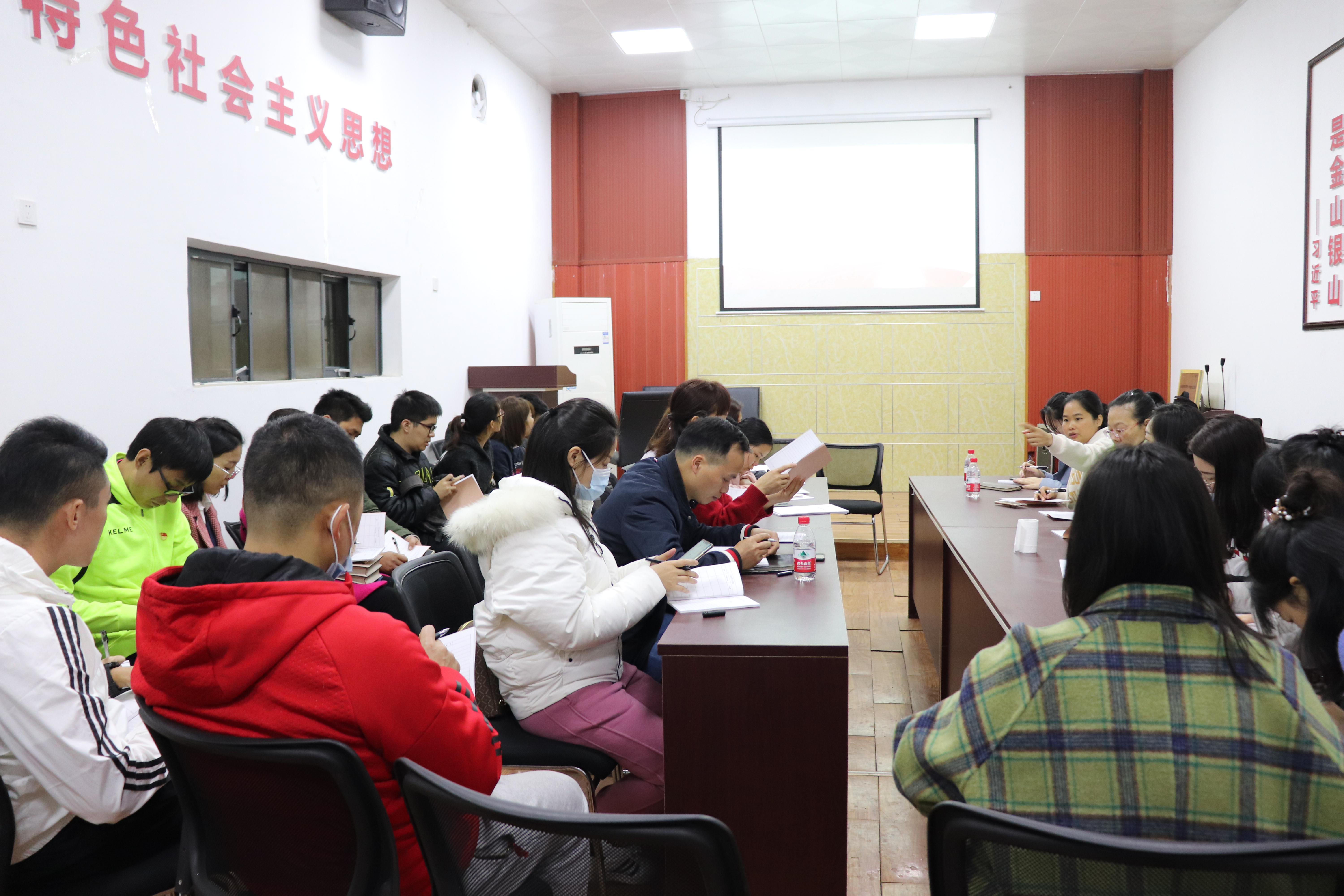 随后,全体党员教师前往广泽禧愿会议室开展开展组织生活会和民主评议党员活动。组织生活会上,党支部书记杨小凤为全体党员教师上了一节以《中国共产党第十九届中央委员会第五次全体会议公报》《习近平:在全国抗击新冠肺炎疫情表彰大会上的讲话》《习近平在纪念中国人民志愿军抗美援朝出国作战70周年大会上的讲话》《习近平在全国劳动模范和先进工作者表彰大会上的讲话》等为主要内容的党课。杨书记理论联系实际,使党员教师深入领会相关精神要旨。接着,党支部委员们作2020年党支部工作述职,全党党员教师进行批评与自我批评并对党员同志进行民主评议。