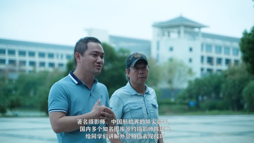 4月24日下午,艺术设计学院《商业摄影》课程思政实践活动在学校顺利进行。《商业摄影》任课教师卢宝书教授,2019级视觉传达设计专业全体学生参加本次活动。活动还邀请了国家一级导演、演员郭家驯中国航拍界顶尖高手、著名摄影师陈建飞担任现场指导老师。