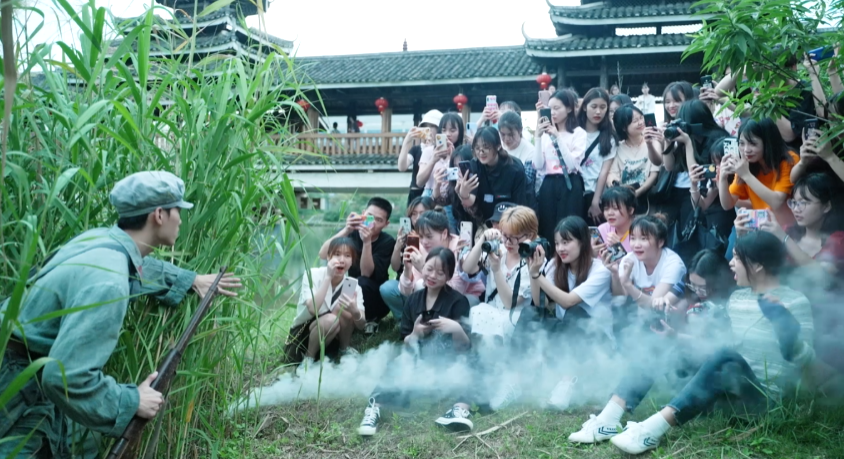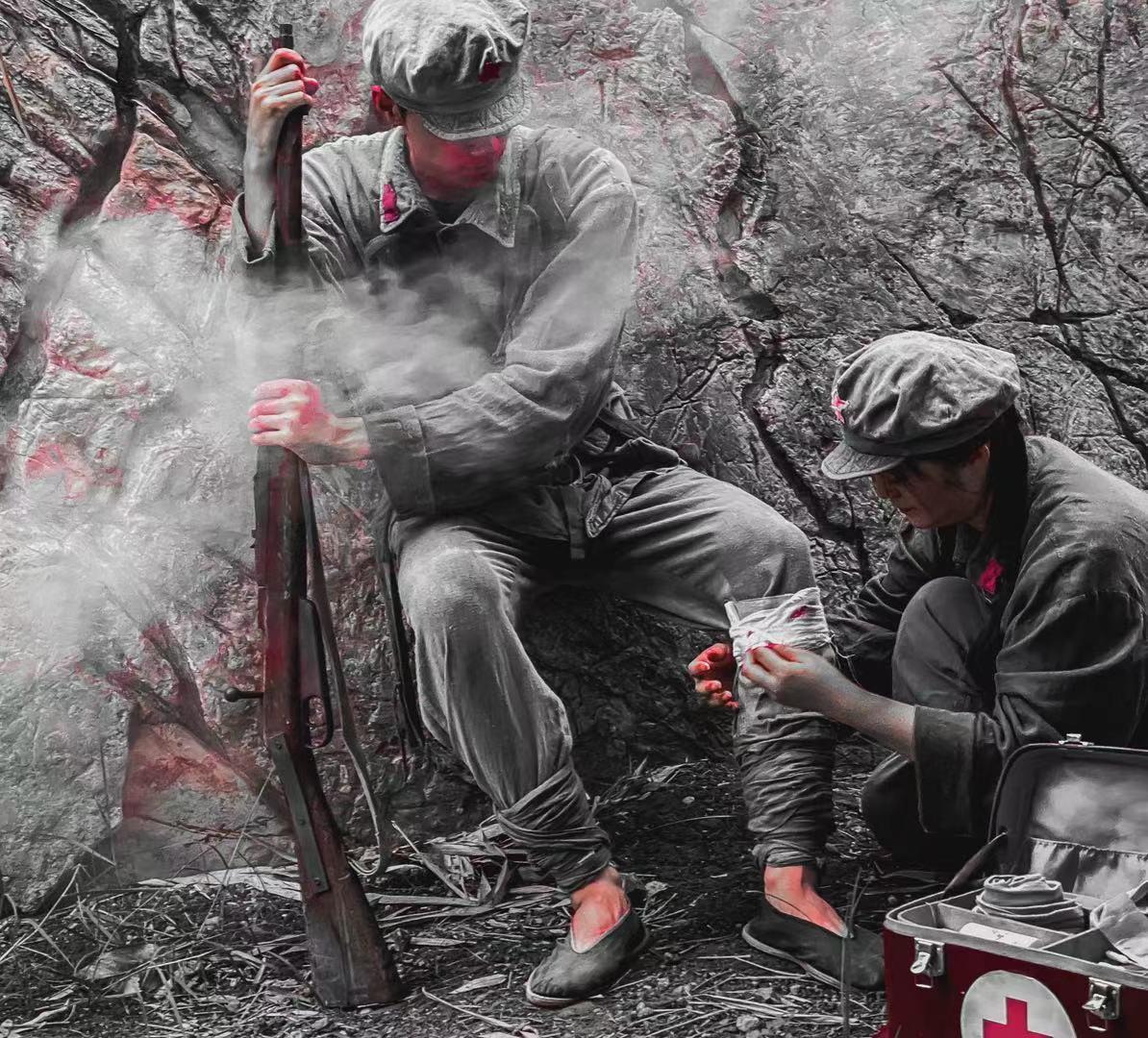 本次课程思政实践活动是落实《kaiyun体育网页登录入口党史学习教育实施方案》工作部署的一次有效举措。宝书教授将党史学习教育思想政治教育元素融入到课程的教学实践环节,让学生运用所学知识进行红色主题摄影创作实现思想政治教育与专业教育的有机统一活动现场,学院学生扮演红军战士演绎抗战情景,充分调动了学生的学习积极性,宝书教授和郭家驯陈建飞老师现场指导摄影技巧。上课学生认真听讲,现学现用。