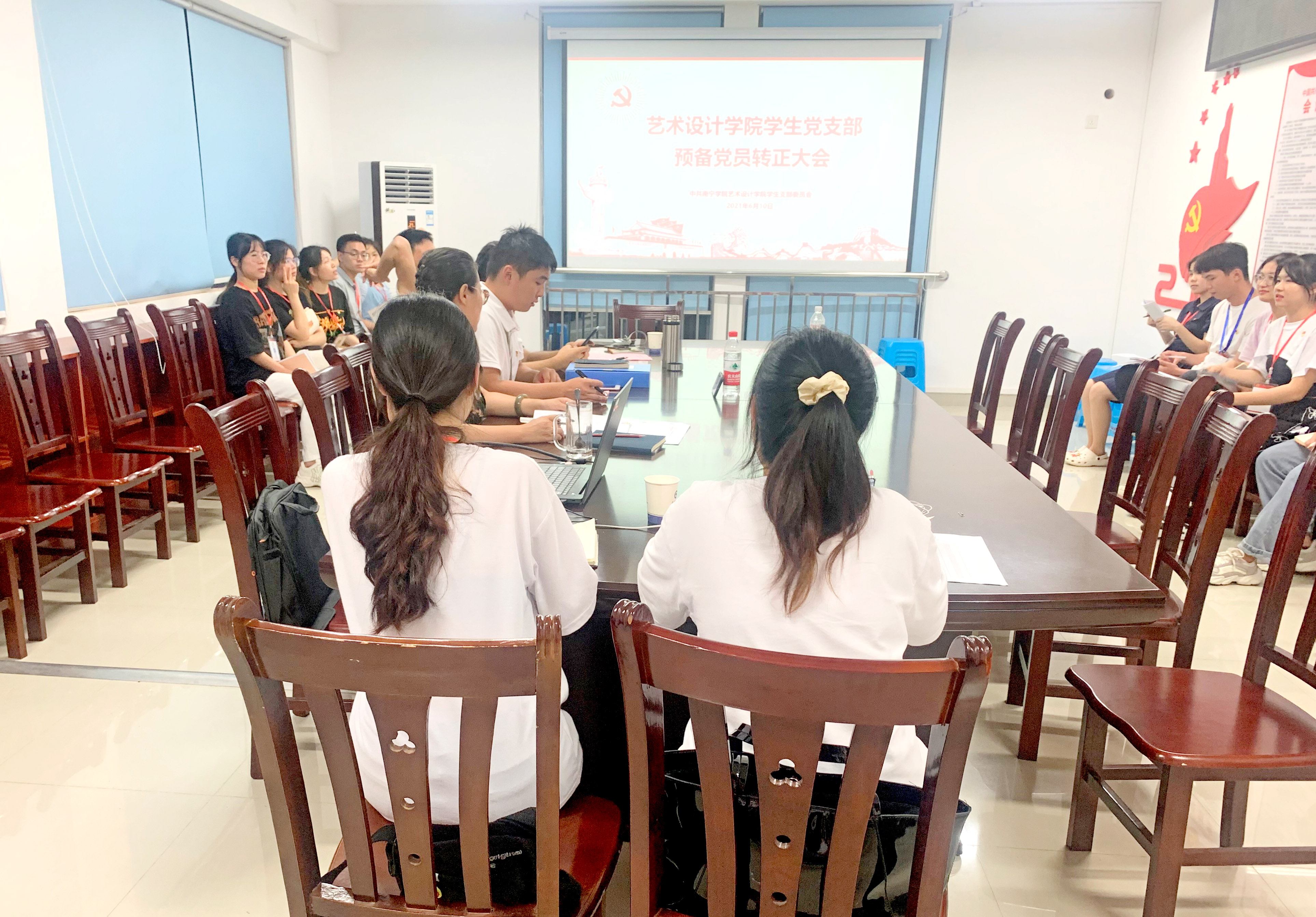 6月10日晚,艺术设计学院学生党支部在行政楼421会议室召开预备党员转正大会。学生党支部书记覃兆刚,辅导员郭莉、王振迎、蓝克,待转正16名预备党员以及他们的入党介绍人、学院党支部全体学生党员参加会议。会议以线上和线下相结合的方式进行,会议由覃兆刚同志主持。
