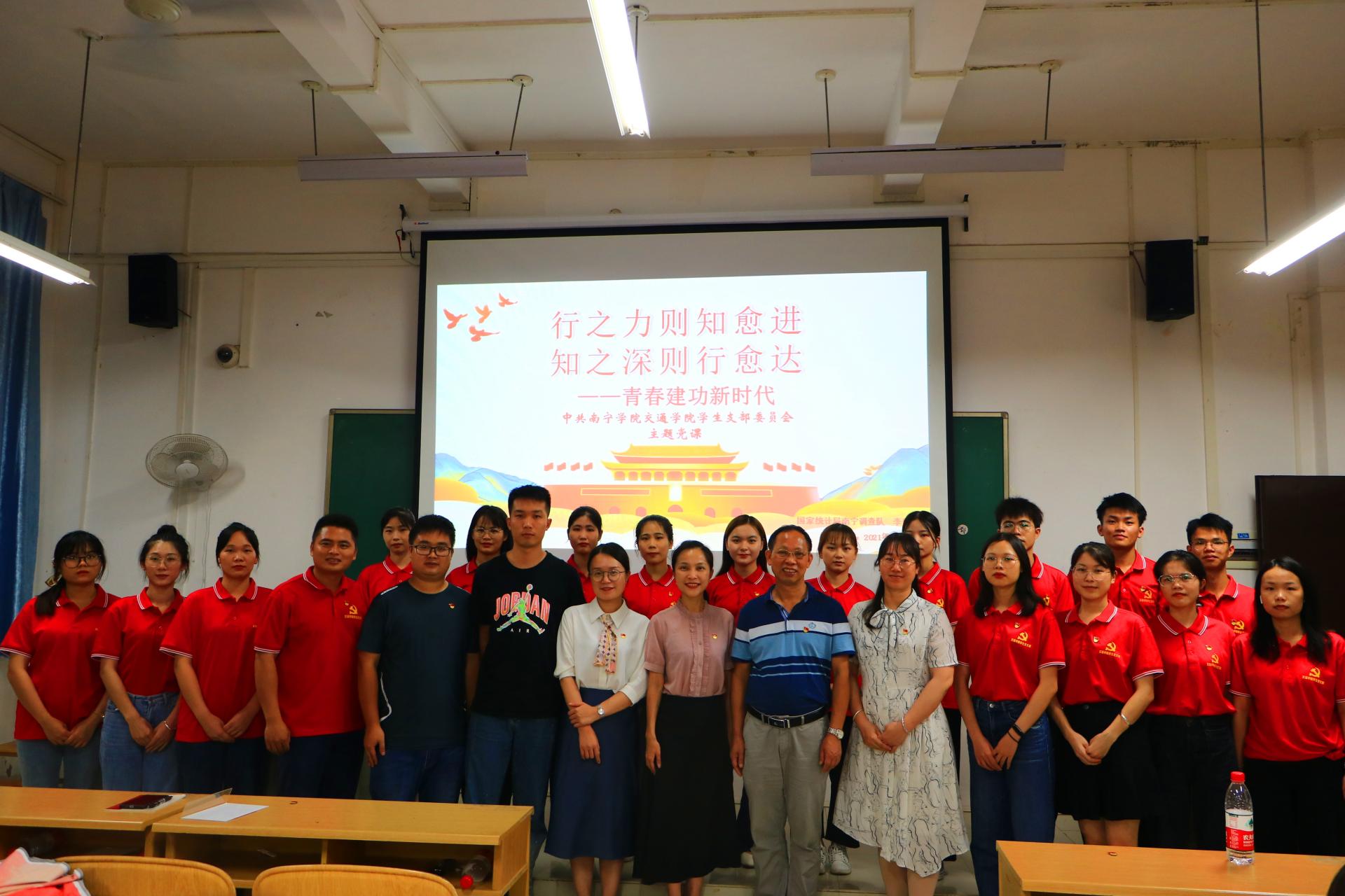 为加强学生党员队伍的思想政治理念建设,鼓励党员传承红色基因,勇担时代使命,让即将走向工作岗位的毕业生党员学有所思,不负韶华,发挥好党员先锋模范作用,于2021年6月24日,在敷文园B101交通学院党总支邀请支部共建单位国家统计局南宁调查队党支部李静妮队长以“行之力则知愈进,知之深则行愈达——青春建功新时代”为主题在毕业之际给交通学院毕业生党员上一堂党课。