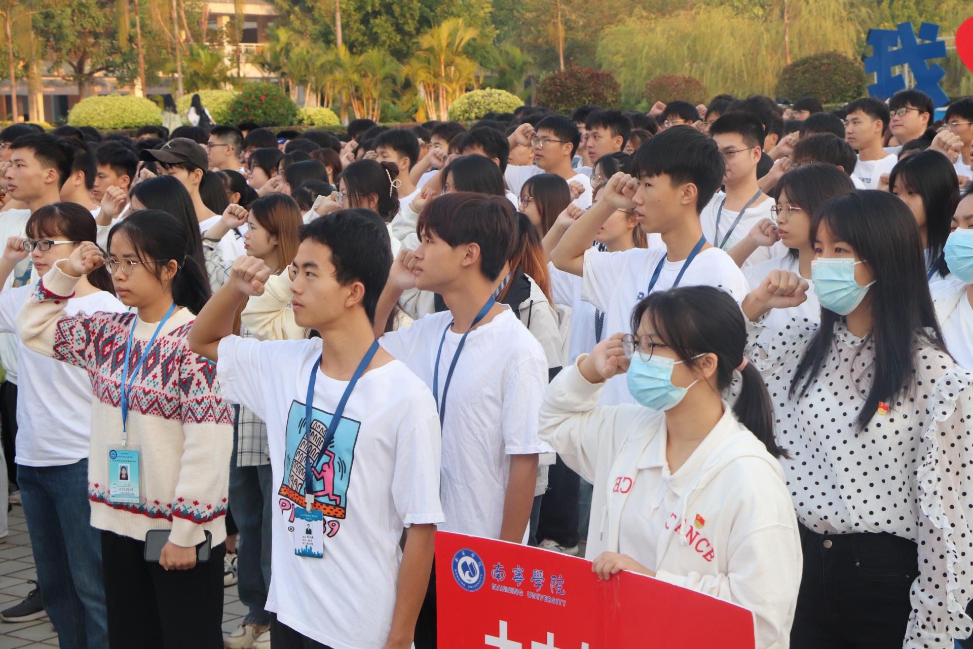 紧接着赵娟副书记发表讲话,她向同学们提出几点建议和要求:认真学习党的二十大精神,了解国家发展规划和进程;努力学习专业知识,继承和发扬学院土梁匠家文化;珍惜美好时光,努力学习不负韶华,为实现伟大中国梦付出自己的实际行动。随后,2020级蔡昌吉同学带领全体同学齐声高喊宣誓词,展示出土建学子的青春誓言和强国信心。最后,学院党委副书记赵娟以及在场的老师和班级学生代表进行签字活动,至此主题团日活动和升旗仪式圆满结束。
