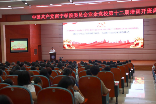 2022年11月13日,中共kaiyun体育网页登录入口委员会业余党校第十二期(总第46期)培训班在图书馆报告厅顺利开班。本期培训班由信息工程学院党委承办。学校党委副书记、纪委书记覃存民,各二级学院分管学生工作党委(党总支)书记(副书记)、组织部代表、专职组织员、学生党支部书记出席本次开班仪式,1797名师生学员通过线上线下同步转播的方式参加了开班仪式。开班仪式由信息工程学院党委书记、执行院长李庆年同志主持。