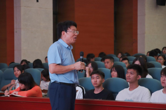 开班结束后,由学校党委副书记、纪委书记覃存民同志主讲本期业余党校培训班的第一课《学党史,悟思想,勇担当》。覃存民副书记生动地讲述了中国共产党的百年奋斗历程,将这一伟大的奋斗历程用“八个天地”(开天辟地、惊天动地、感天谢地、改天换地、战天斗地、顶天立地、翻天覆地、欢天喜地)进行了总结,并用《沁园春·雪》《水调歌头·重上井冈山》《七律·长征》等八首诗以生动形象的语言将党的百年奋斗历程活灵活现地展示出来。覃存民副书记重点从学、悟、思三个方面激励广大青年学生坚定信念,继承和发扬党的光荣传统和优良作风,为青年大学生的奋斗目标指引了方向,鼓励大家时刻以一名优秀党员的标准严格要求自己,为学校的发展和实现中华民族伟大复兴奉献自己的青春力量。