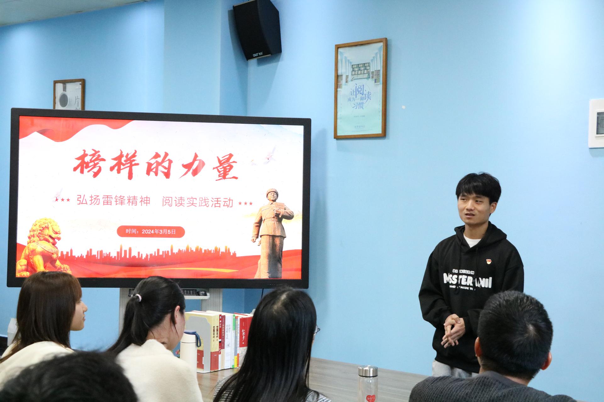 然后,现场读者与图书馆支部党员积极分享了自己阅读雷锋书籍的学习心得,交流对雷锋精神的理解和感悟。商学院21级工程审计2班的陈翠同学对雷锋精神进行了深刻的解读并发表感悟:“也许我们可以成为他,将他的那种精神传承下去,帮他续写没有完成的日记,去帮他走完那一段没有走完的路。”信息工程学院学生第三党支部的凌元首向大家发起了号召:“我们在座的各位有党员,也有一些学生干部,我们更应该多阅读雷锋同志的感人事迹,向雷锋同志学习,从身边的小事做起,切切实实地帮助身边的人。”