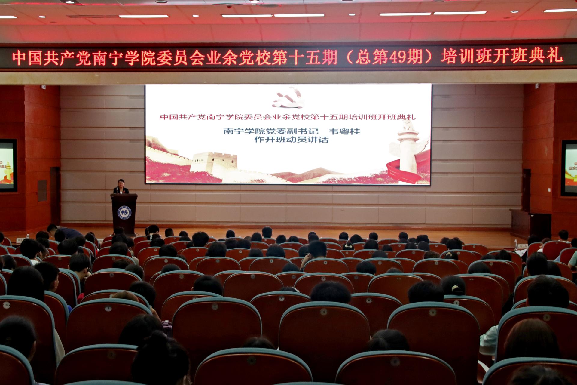 接着,校党委副书记韦粤桂作开班动员讲话,向全体培训班学员表达祝贺和肯定,并对学员们提出了四点希望:一是认真学习党的历史、新党章等党的基本知识,深刻理解中国共产党是中国特色社会主义事业的领导核心和时代意义;二是处理好文化学习和党校学习的关系,合理分配好时间,相互促进,共同提高;三是处理好自身进步与共同进步的关系,以自身进步带动共同进步;四是处理好组织上入党和思想上入党的关系,从组织上入党是一次的事,而从思想上入党则是一辈子的事。