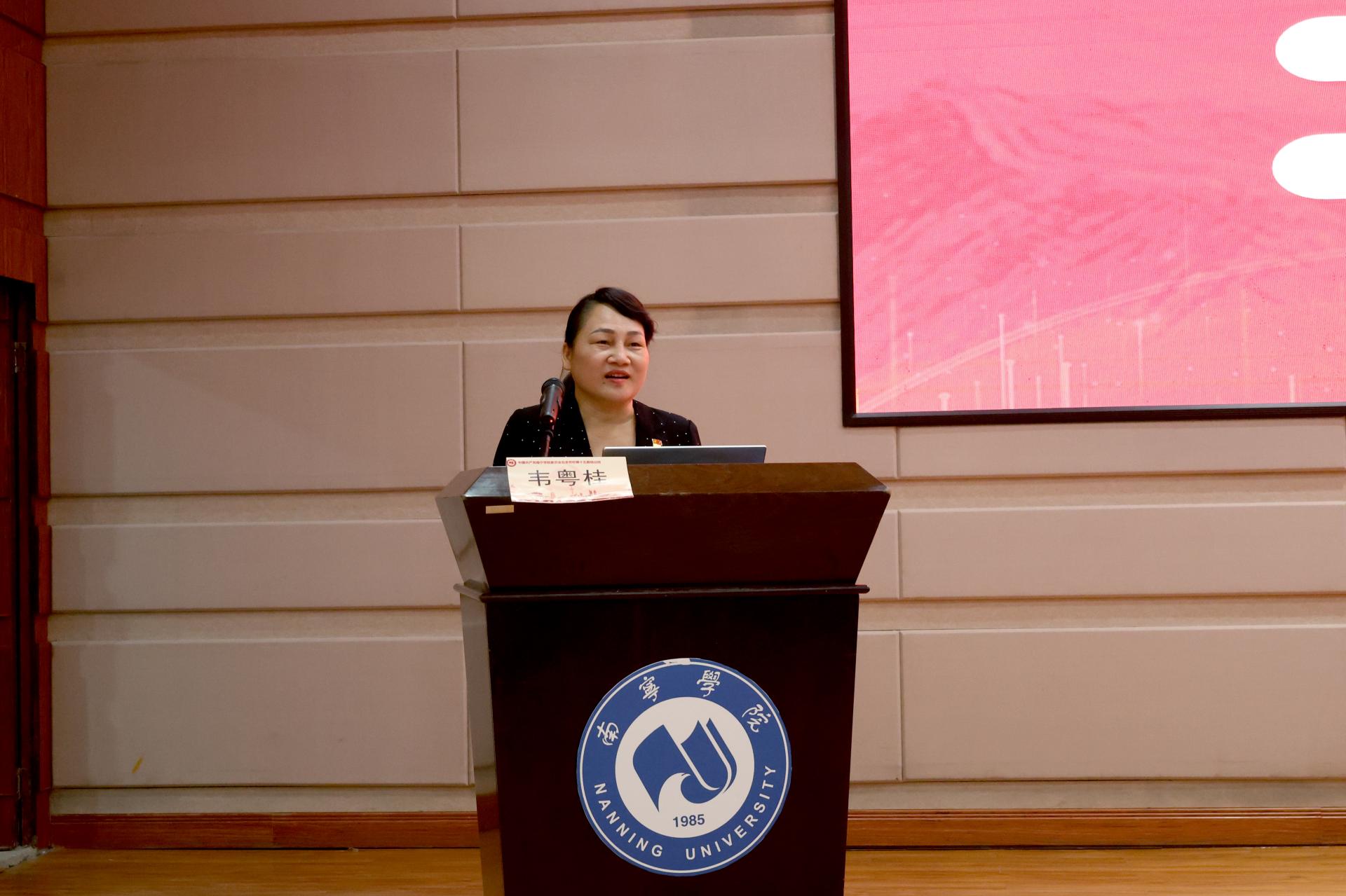 学校党委副书记韦粤桂老师进行授课