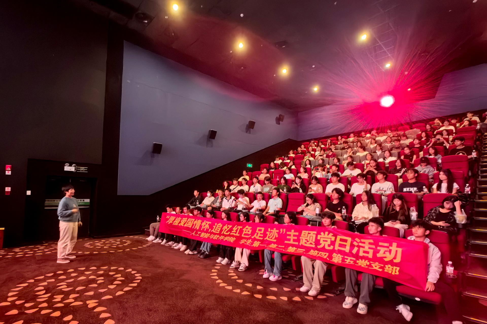 为深入学习和弘扬伟大抗美援朝精神,增强师生党员的爱国情怀和责任意识,11月5日下午,人工智能与软件学院学生党支部到影院开展了“厚植爱国情怀,追忆红色足迹”的主题党日活动,组织观看了红色影片《志愿军:存亡之战》。学院专职组织员、学生第一党支部书记韦双妮、学生第二党支部书记余建明、学生第三党支部书记梁肖杨、学生第四党支部书记吴秀海、学生第五党支部书记陈家兴以及各支部学生党员、发展对象、积极分子参加了此次活动。