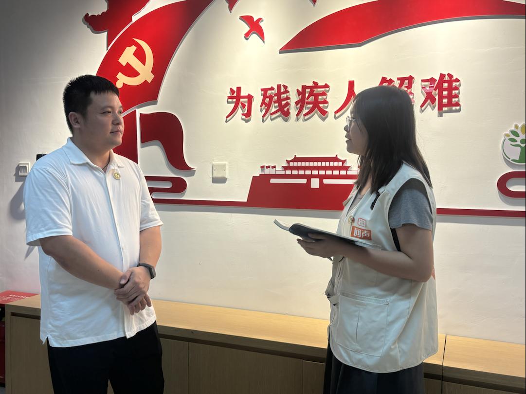 团队队长梁海梦与残联副理事长覃杨围绕特殊儿童融合教育工作展开一对一访谈,就融合教育困境突破、志愿服务价值发挥及支持体系构建等事项进行深入交流探讨。覃副理事长对大学生参与助残融合事业表示肯定,他强调,社会力量尤其是大学生群体的常态化参与,对特殊儿童群体关爱意义重大,并鼓励团队通过现有渠道深化志愿服务。针对团队提出的专业能力提升问题,他建议志愿服务需“知行合一”,大学生应深入一线了解特殊儿童真实需求。同时,南宁市残疾人事业服务协会联合相关协会推出公益手语班,并正打造“福爱助残志愿者”体系,将邀请资深义工担任导师,为志愿者提供专业化培训,助力提升服务水平。交流最后,覃副理事长寄语团队继续以青春智慧支持残疾人事业,实现公益可持续发展。团队表示,将积极参与培训,深化常态化服务,为特殊儿童融合教育贡献力量。