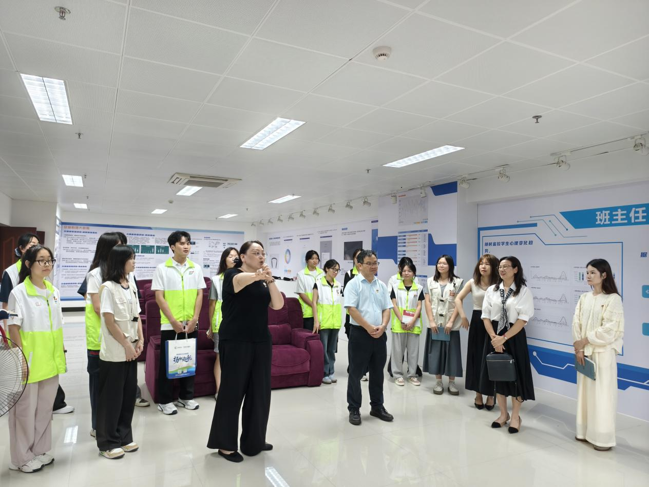 在南宁市残疾人事业服务协会秘书长韩燕妮、金融助残部常务副部长张春辉的陪同下,调研组一行实地参观了残疾人活动中心,深入了解残疾人康复训练、技能培养及社会融入等多元化服务平台的运作模式,切身感受精准助残服务的温度与深度。在蚕豆工坊就业帮扶车间与就业创业直播基地中,师生们了解到“技能培训+多元就业”双轮驱动模式,为残障人士搭建起可持续的就业赋能平台。蚕豆工坊就业帮扶车间依托手工制作产业,引导残障人士通过参与蚕豆工艺品制作、非遗手作等特色项目实现稳定增收,逐步构建起“劳动创造价值”的良性循环。随后,在协会秘书长韩燕妮的陪同下,走访团队走进数字化、智能化心理健康共建基地,深入了解基地依托前沿科技搭建的心理健康检测系统,并有机会体验了脑波测试技术、VR疗愈等科技助残项目。该系统通过精准筛查心理健康状况,基于检测结果联动专业心理咨询师团队,提供个性化、定制化的心理健康干预方案,为残障群体心理健康保驾护航,展现出科技助残的创新实践与人文关怀。