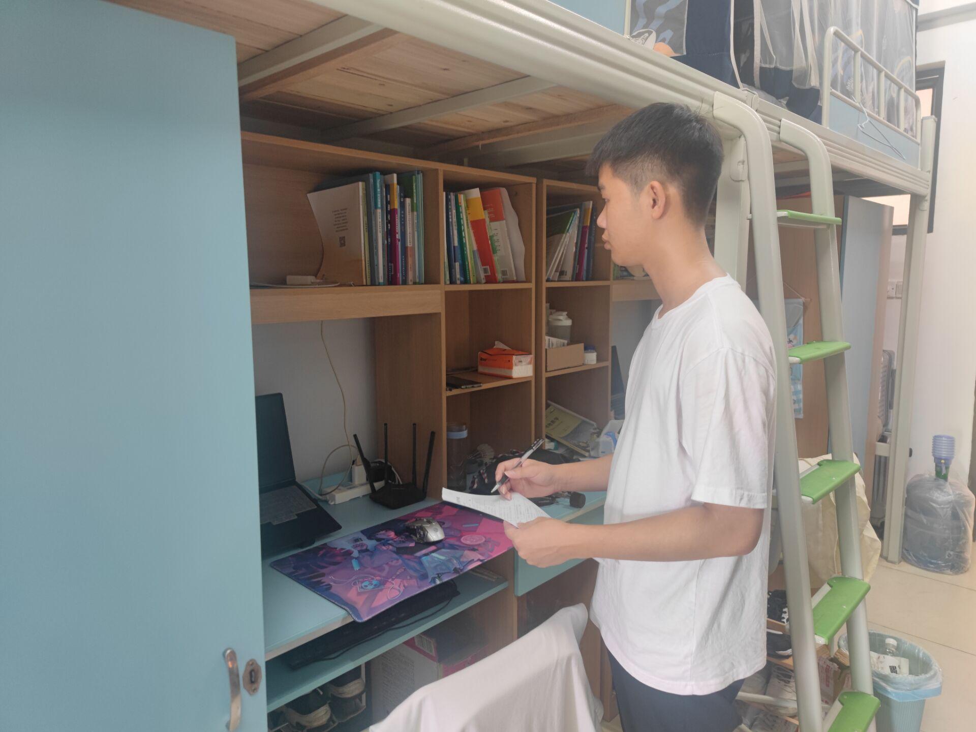 镜头二宿舍里,各基层班级开展宿舍卫生交叉检查,让各宿舍各专业间互相学习,达到共同进步的目标。学生们表示在检查中,对比看到了自己宿舍卫生中存在的不足,并表示今后会与宿舍成员一起努力,向优秀宿舍看齐,建设清洁宜居的宿舍环境,打造宿舍家的氛围。