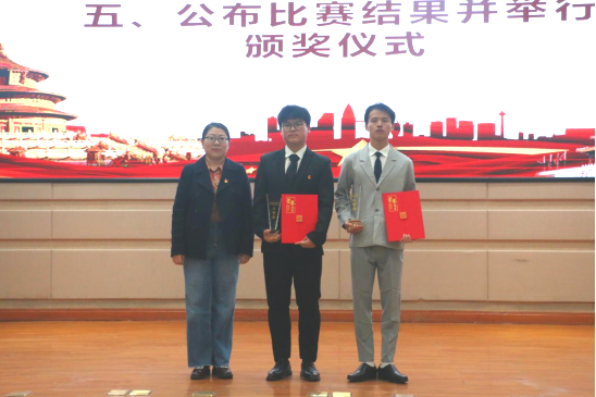 学院党委副书记廖秀媛为获得一等奖及最佳讲解员的选手颁奖