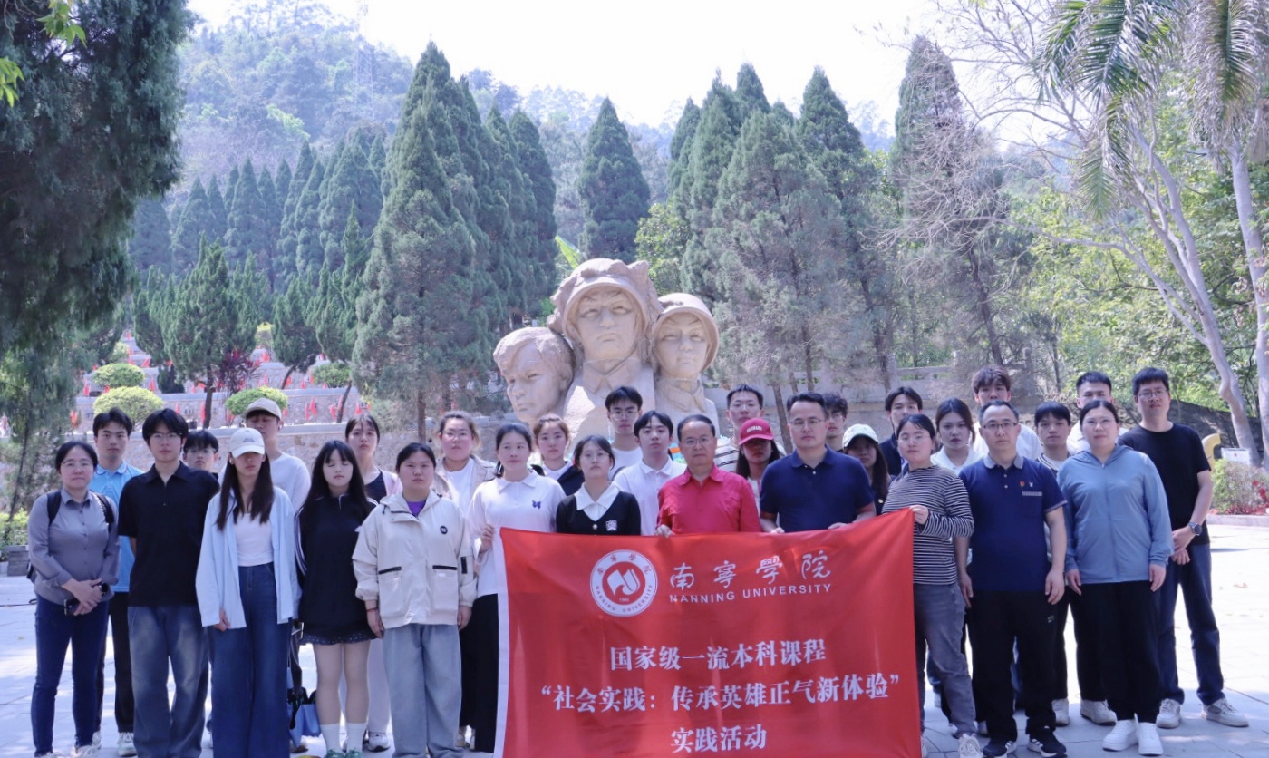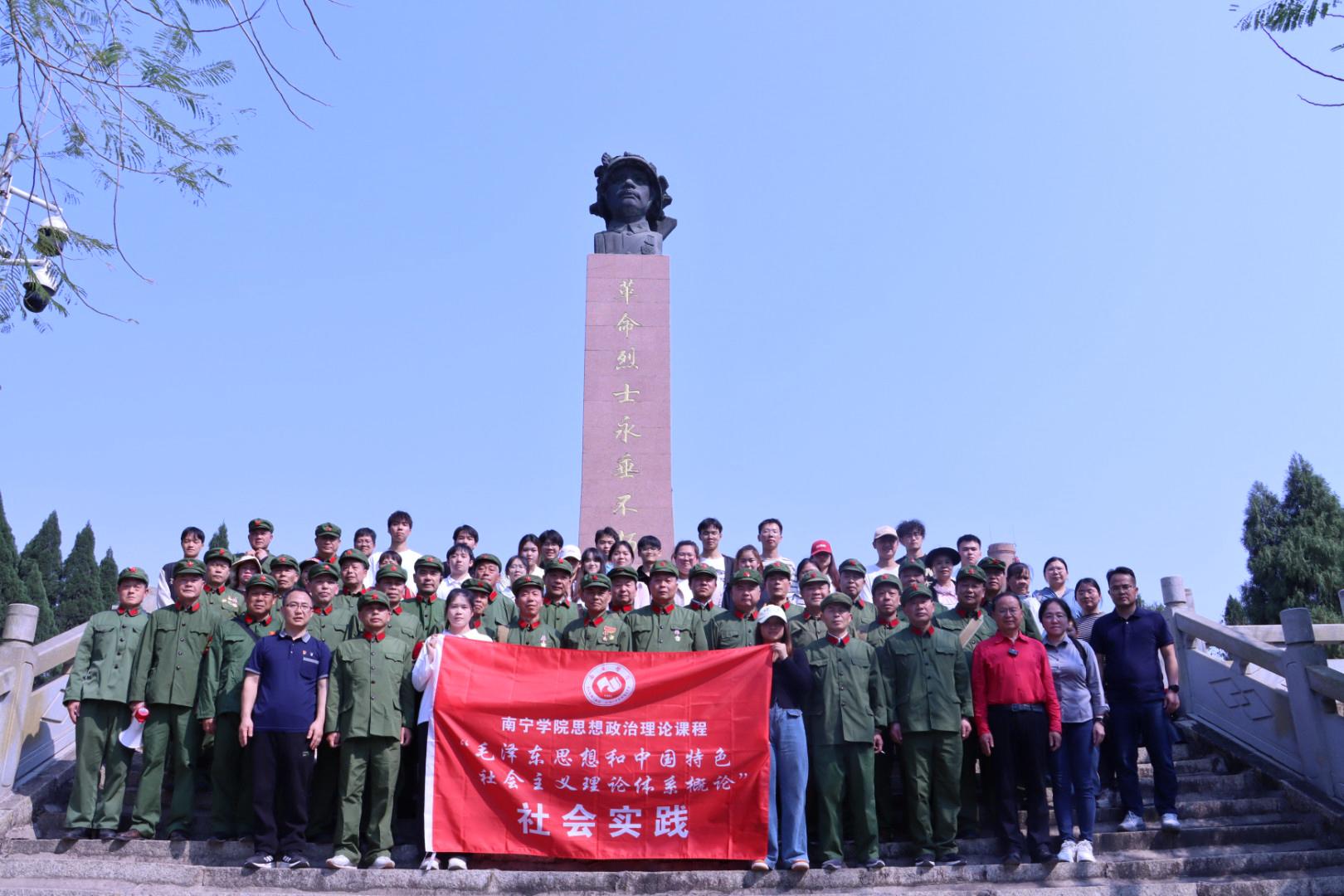 为深化爱国主义实效,传承英雄精神,3月23日,马克思主义学院“毛泽东思想和中国特色社会主义理论体系概论”课程团队联合“社会实践(传承英雄正气新体验)”教学团队,组织32名师生赴凭祥市开展“英魂忠骨伴我走边关”实践教学活动,通过实地研学、祭扫英烈、口述历史等方式,在匠止烈士陵园、南山烈士陵园、法卡山英雄纪念碑园开展沉浸式教学。