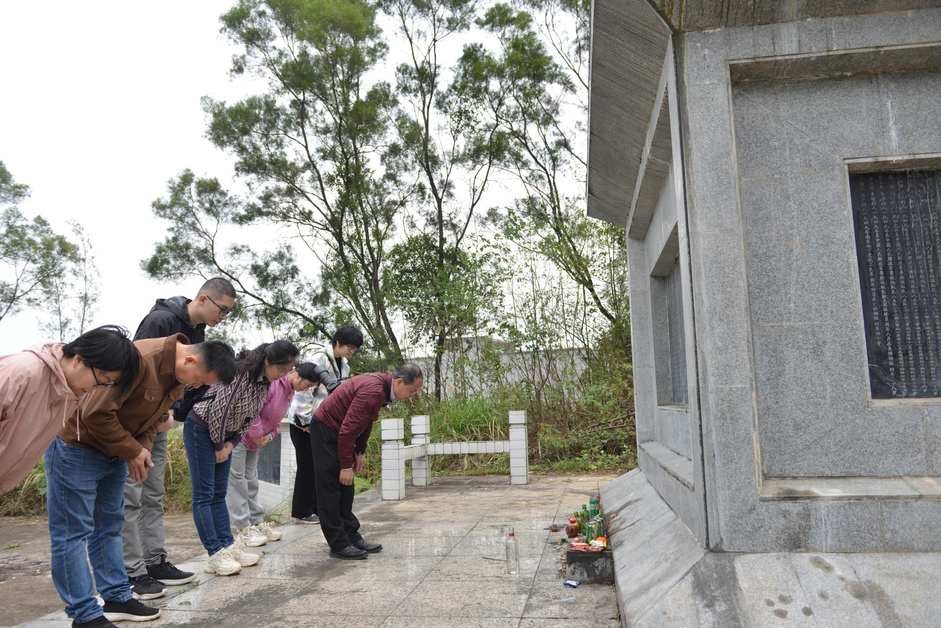 铁血抗日,星火革命。洞内斑驳的防御工事与指挥所遗迹,无声诉说着当年战役的惨烈。次日,团队怀着崇敬之心走访大丰抗日阵亡将士墓、巷贤抗日阵亡将士公墓及革命烈士纪念碑。在庄严肃穆的氛围中,教师们鞠躬默哀、敬献清酒,并细心清理墓园杂草,探索如何通过行走的课堂展现学校五育并举的育人理念。团队教师被上林县将士们“血战但求疆土复,青山处处是坟碑”不畏强敌、保家卫国精神所震撼。