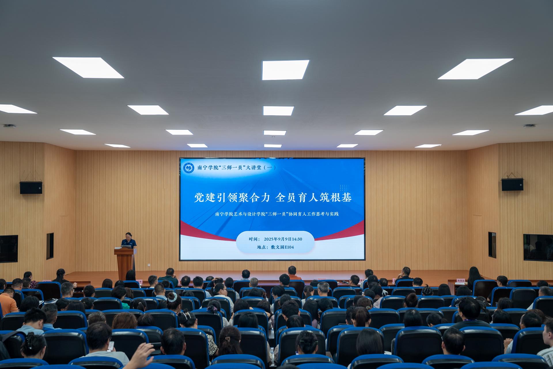 本次大讲堂以艺术与设计学院为分享主体,围绕“党建引领聚合力,全员育人筑根基”主题,从认知、实施、实践等多个维度展开深度分享。艺术与设计学院院长、党委书记黄宇结合学校“三全育人”总体要求与学院专业特色,从“三师一员”协同育人工作的重要意义、现实需要、对提升育人质量的重要意义三方面进行阐释。学院党委副书记岑铭君聚焦艺术与设计学院“三师一员”协同育人工作的实施,从“统好一盘棋、划清工作区、画好导航图、建好资源库”四个方面介绍了学院的具体推进举措,全面展现了学院从制度建设到落地执行的完整工作链条。学院专职辅导员郭莉聚焦辅导员工作的效能提升,结合自身多年一线工作经验,分享了“清单化管理+精准化服务”的工作方法。学院班主任朱敬围绕“班主任角色的作用发挥”,结合所带视觉传达设计专业班级的案例,阐述了班主任在“三师一员”协同育人工作中的“桥梁纽带”与“贴心守护者”角色。