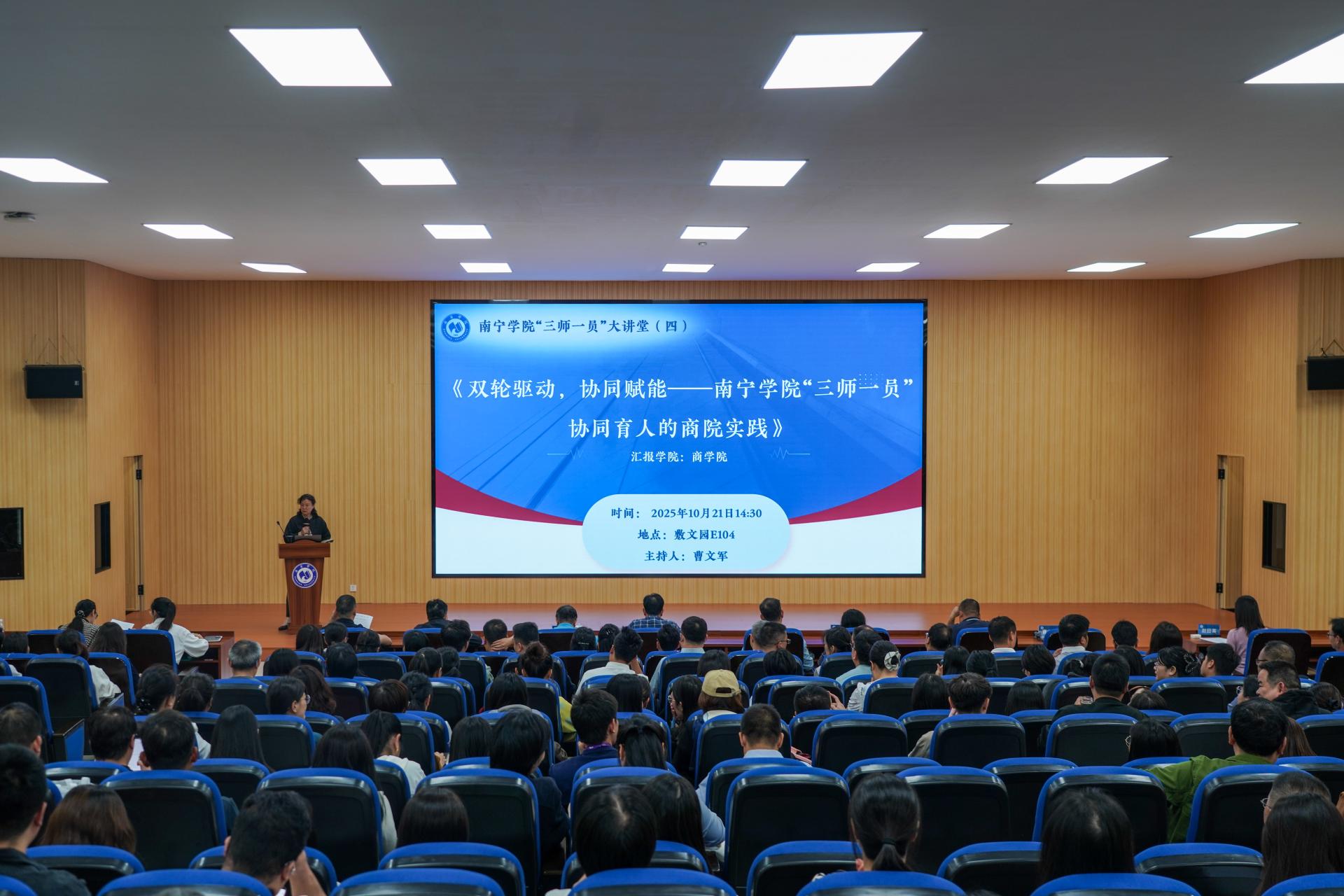 在全面落实立德树人根本任务、深入推进“三全育人”综合改革的时代背景下,kaiyun体育网页登录入口持续探索育人机制创新,着力构建特色鲜明、实效显著的学生成长支持体系。10月21日,学校在敷文园E104报告厅成功举办“三师一员”大讲堂第四讲。本次活动由学校纪委书记曹文军主持,特邀商学院进行专题分享。学校领导班子、各职能部门与二级学院负责人及教师代表齐聚一堂,共同探讨协同育人的实践路径与未来方向。