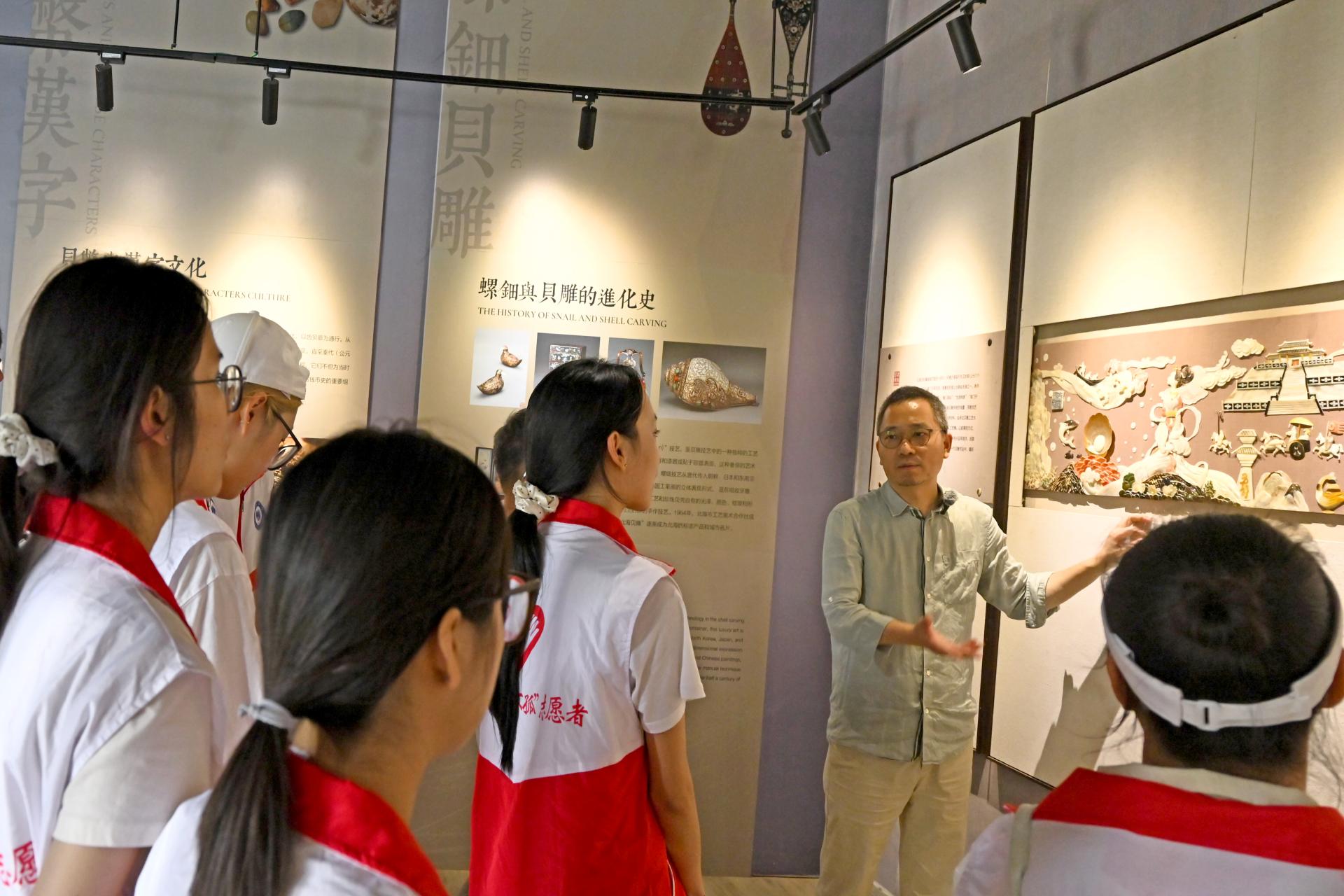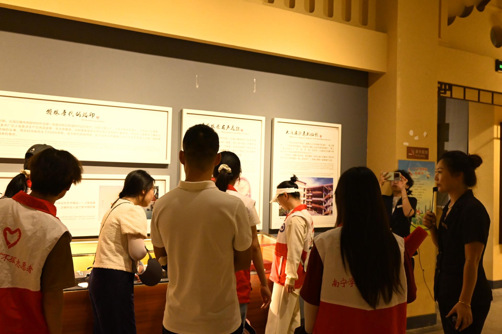 下午,实践团队走进北海贝雕博物馆,正式展开了非遗文化的探索之旅。踏入博物馆展厅,琳琅满目的精美贝雕展品瞬间吸引了成员们的目光,其巧夺天工的工艺令人震撼。专业讲解员以贝雕的起源为切入点,引领大家穿越历史长河。在讲解员的解说下,成员们沉浸在这跨越时空的艺术演变之中,深刻感受着贝雕艺术的独特魅力与深厚底蕴。