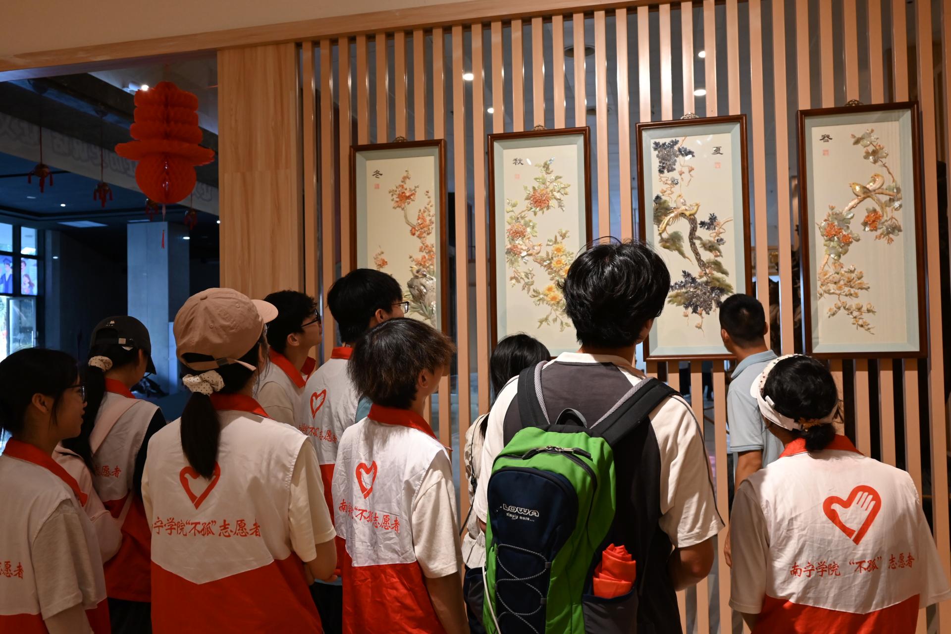 在何明军秘书长的引领下,团队成员自由观摩馆内作品并交流探讨,何明军秘书长强调作品承载着地域、民族的历史记忆与文化基因,从艺术审美、文化内涵等角度进行深入讲解。通过何秘书长的分享,让成员们对非遗文化的传承与发展有了更进一步的了解。