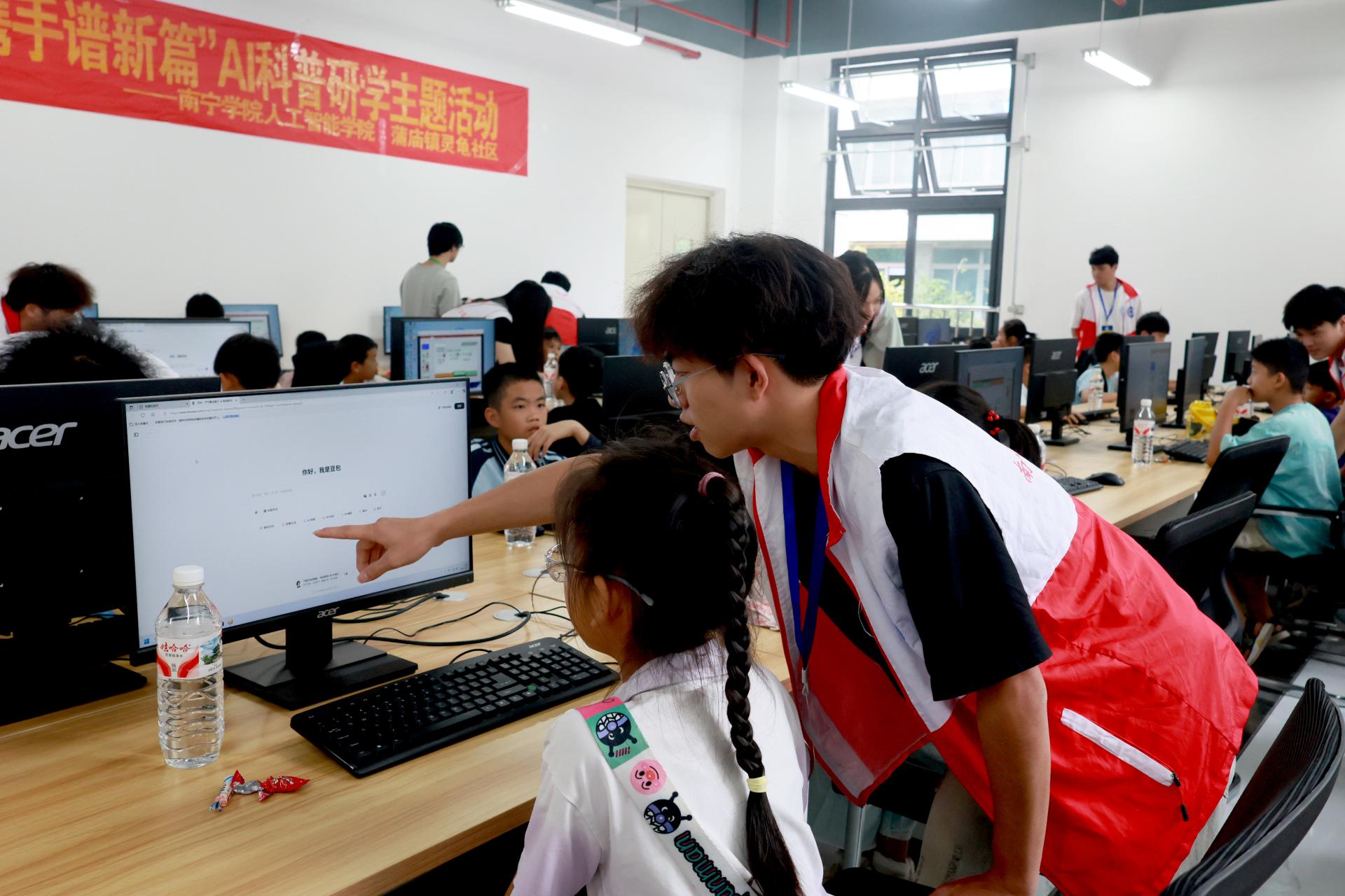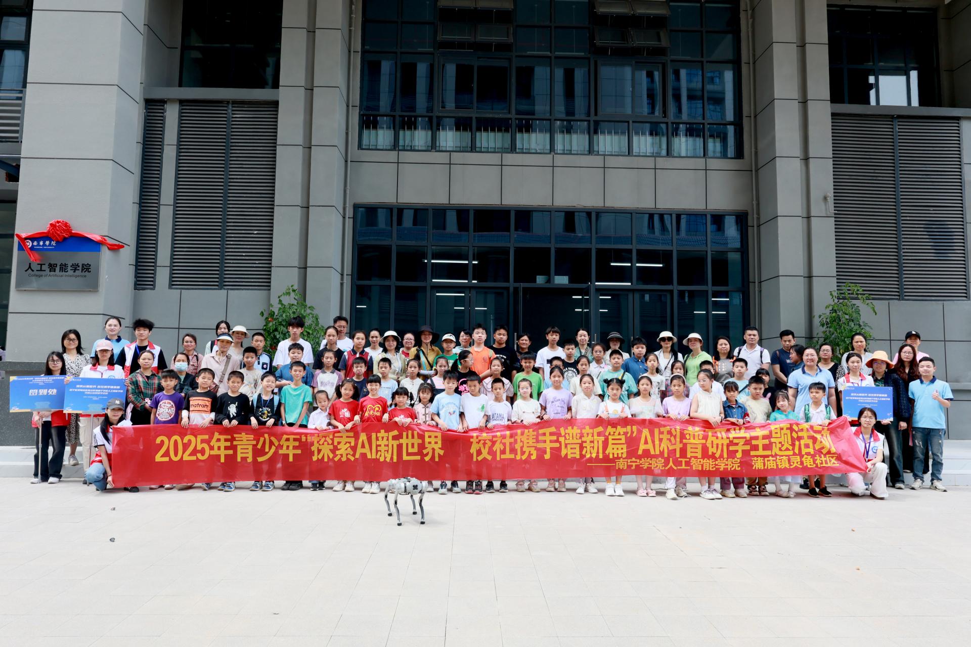 为深化学院实践育人平台建设、推动学科专业优势服务区域发展,5月11日上午,灵龟社区青少年到人工智能学院开展AI科普研学活动。邕宁区蒲庙镇灵龟社区党支部书记、居委主任刘士慧、居委会副主任颜国浩、妇联主席黄少鲜、团支部书记黄颖出席本次活动,学院党委副书记李珠珠、学工科科长、团委书记梁信舅、团委副书记余建明出席活动。