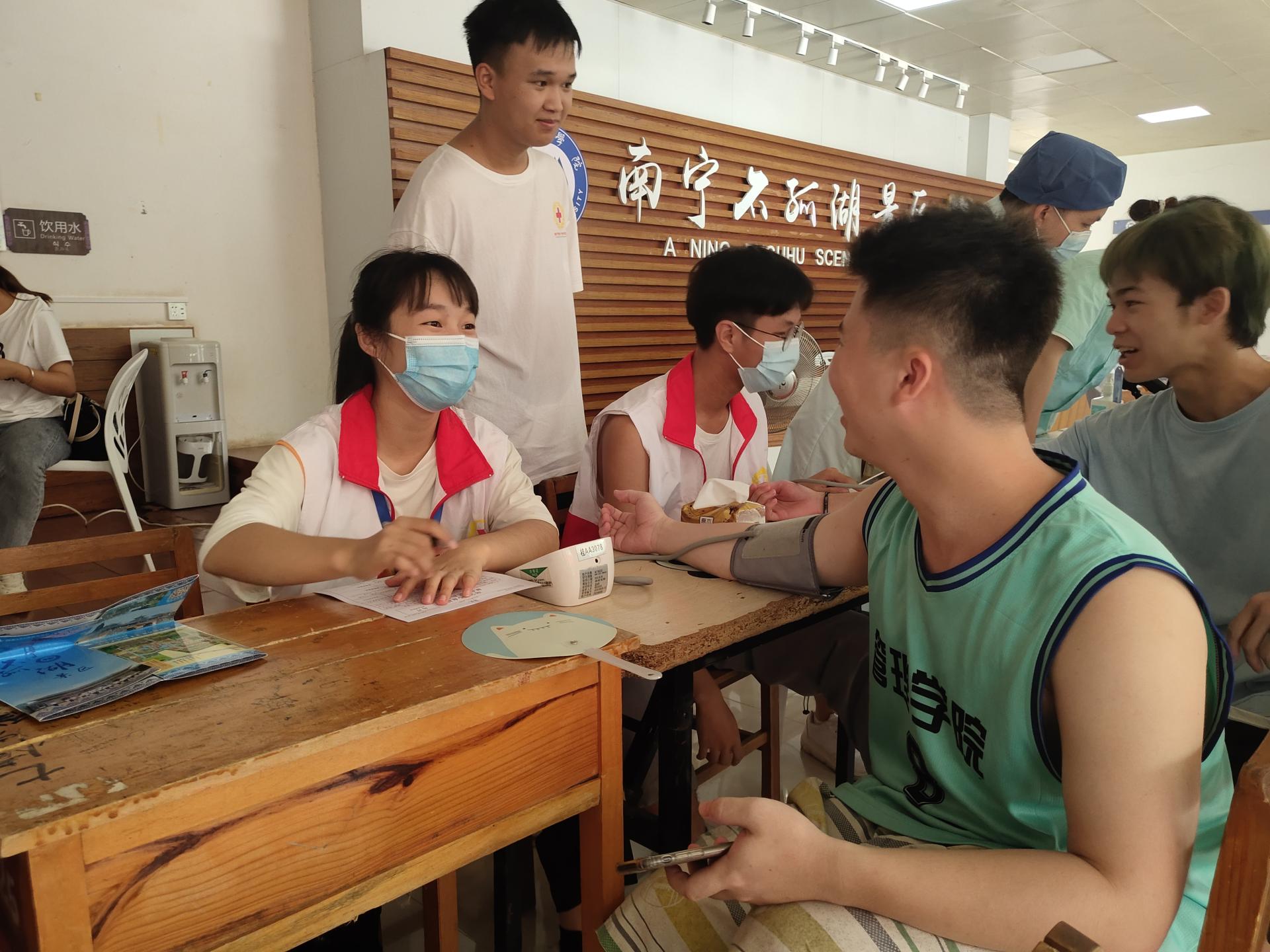 献血学生正在测量血压