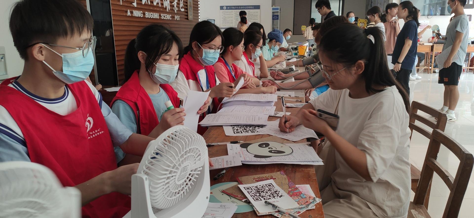 献血学生正在报名填表